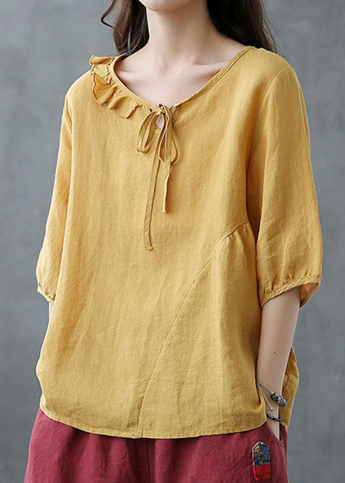 • DIY O Neck Cinched Spring Shirts Women Sewing Red Top - SooLinen