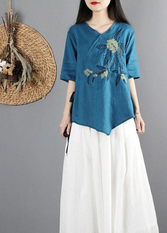 • French Red Shirts Lapel Embroidery Blouses - SooLinen