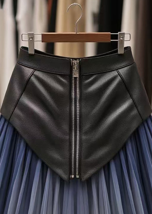 Art Blue Wrinkled High Waist Tulle Patchwork Skirts