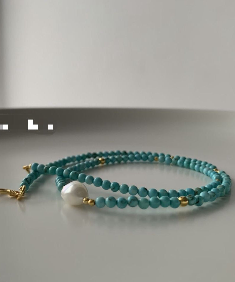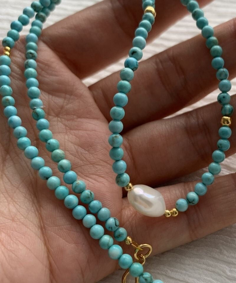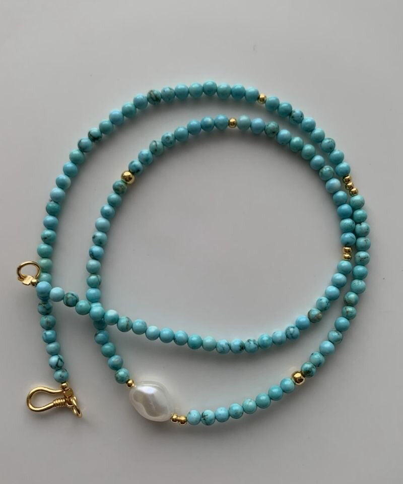 Art Green – Halskette aus Sterlingsilber mit vergoldeten türkisfarbenen Perlen