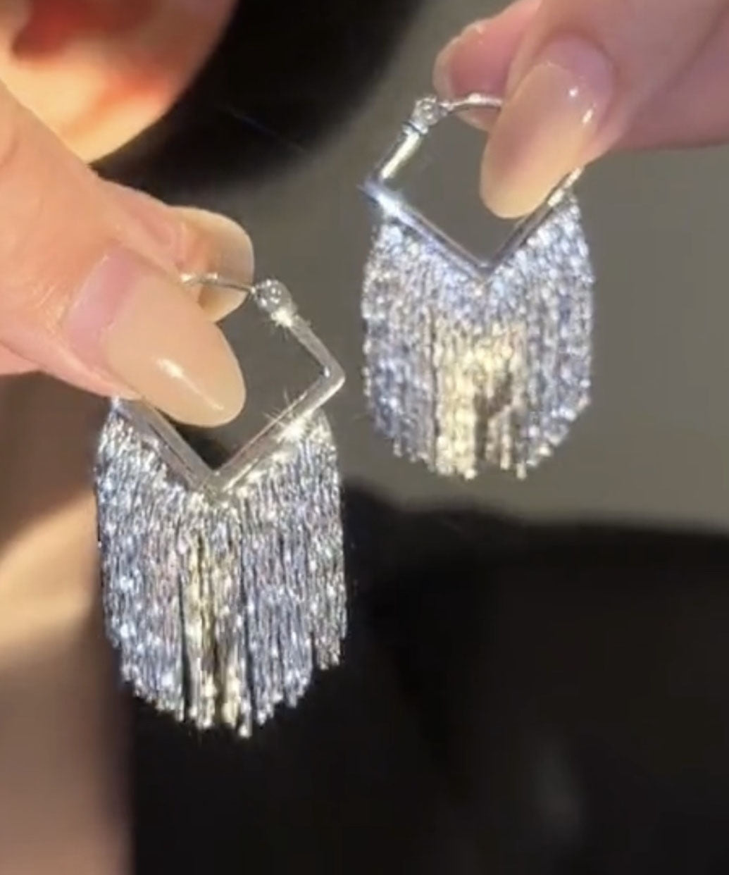 Kunst Metall Zirkon Quaste Tropfen Ohrringe