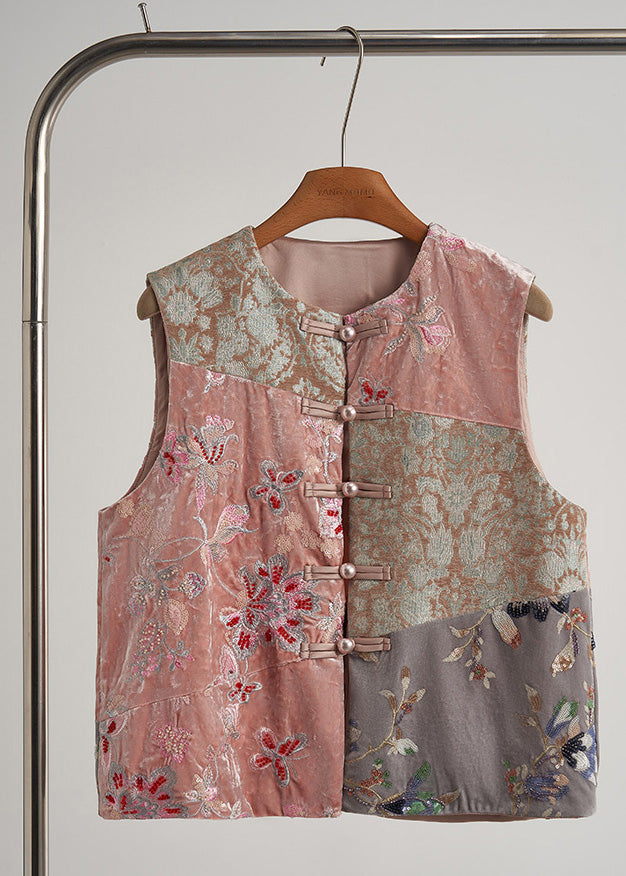 Kunstrosa bestickte Nagelperlen-Seidenvelours-Westen im orientalischen Stil für den Frühling