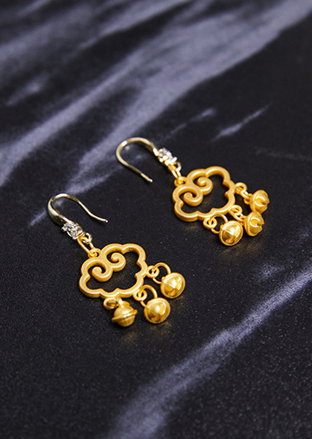 Art Kleine Glocke Glücksbringer Wolken 14K Gold Perle Tropfen Ohrringe