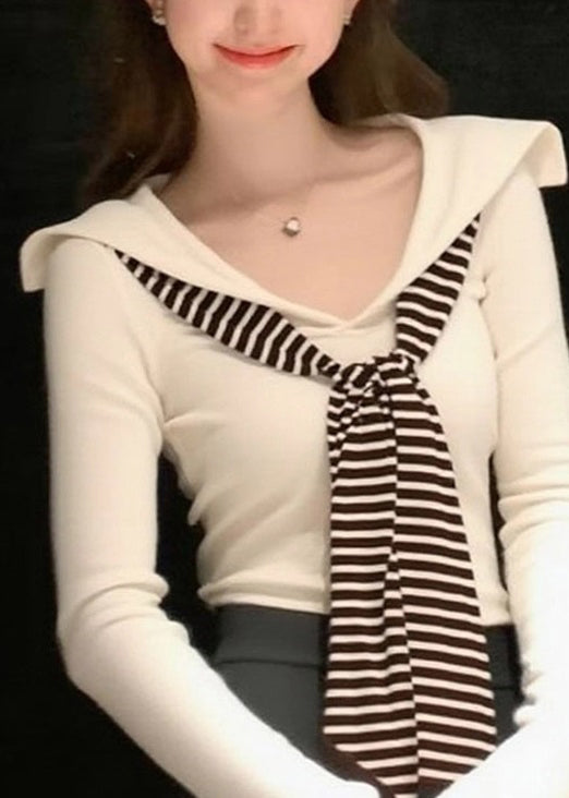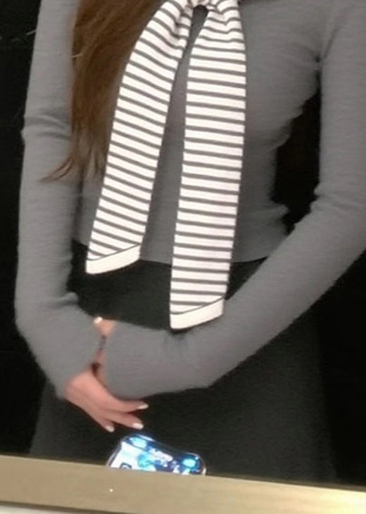 Herbstliches, französisch-graues, schmal geschnittenes Strickoberteil mit Matrosenkragen
