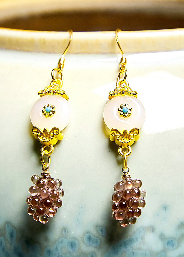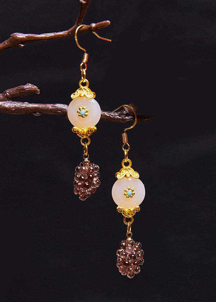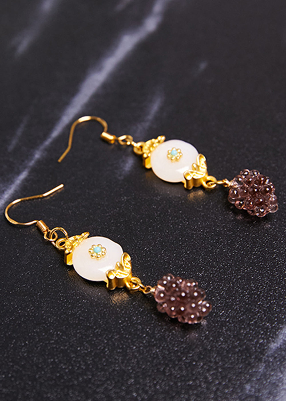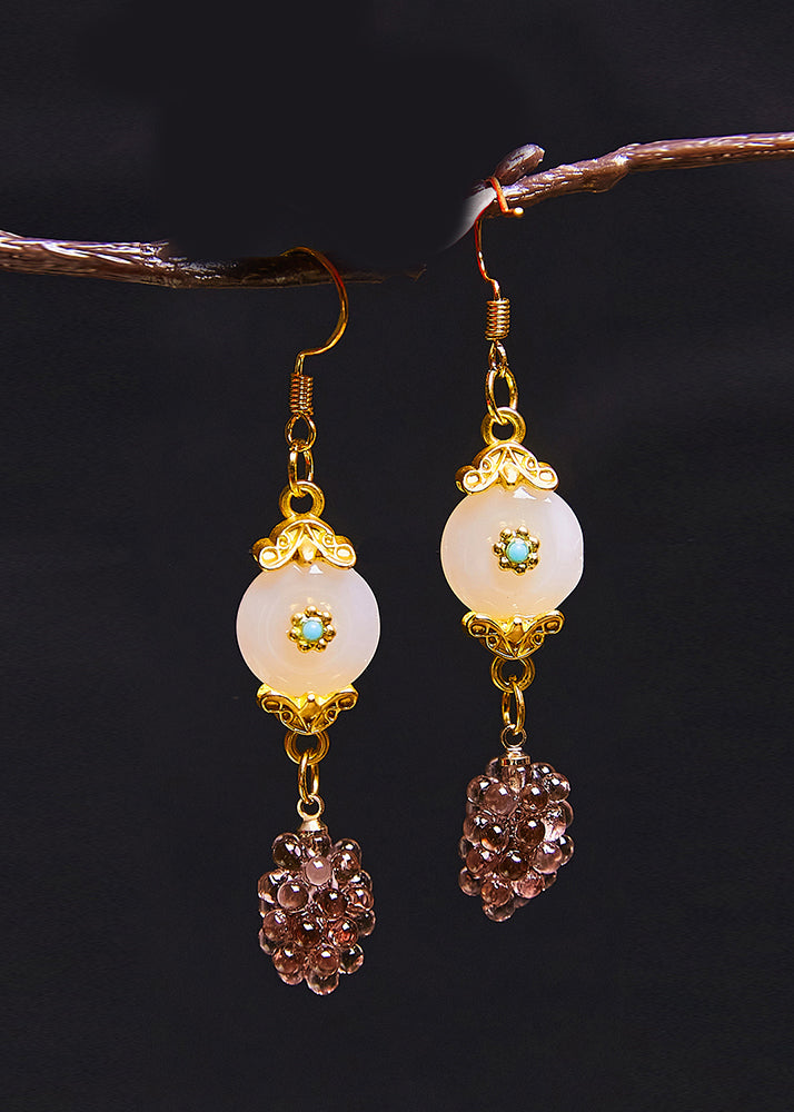 Wunderschöne Trauben Feine weiße Jade Tropfen Ohrringe