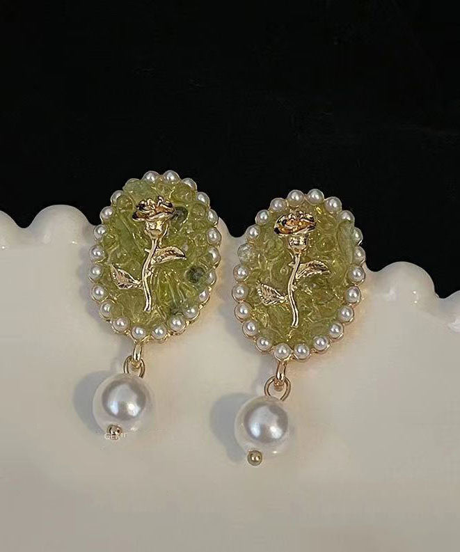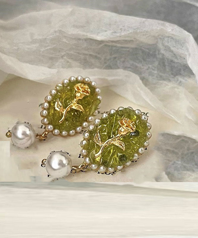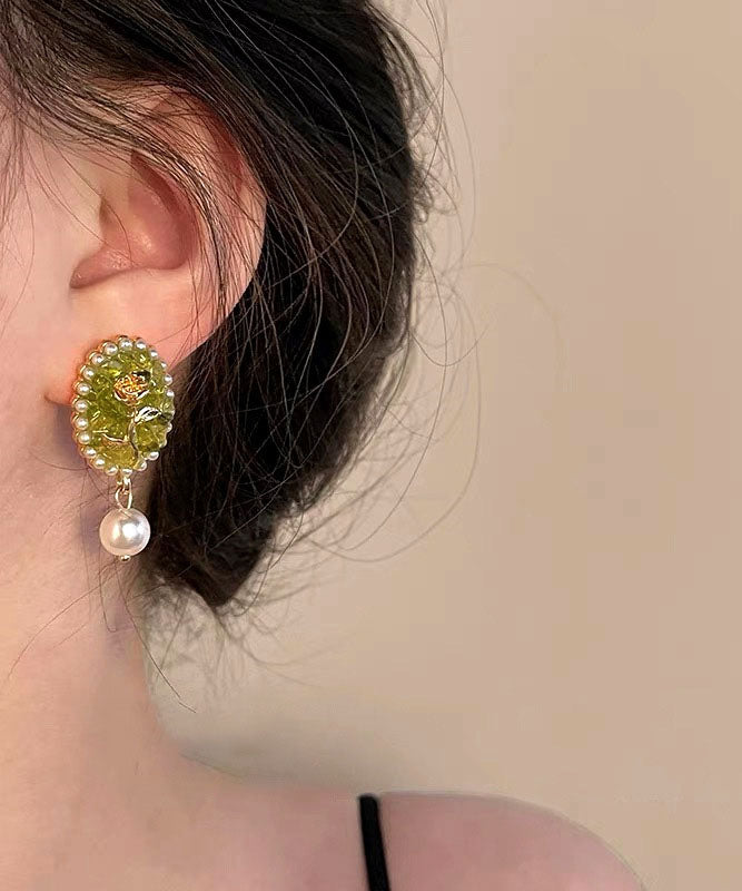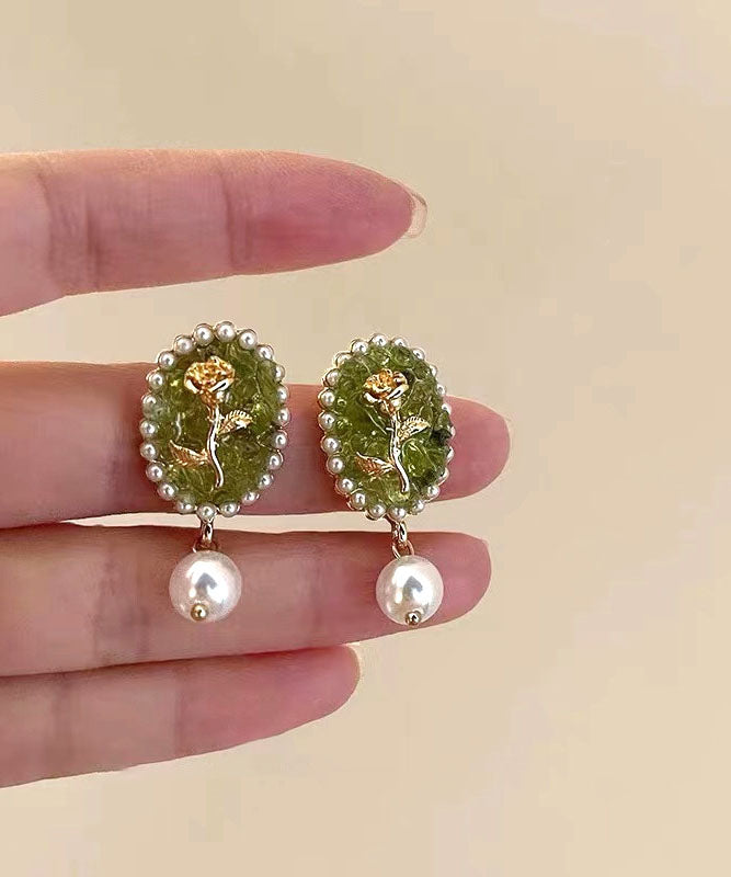 Wunderschöne grüne Tropfenohrringe aus Sterlingsilber mit Perlen und Harz