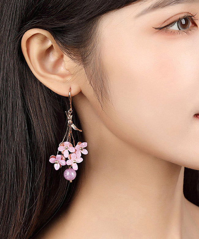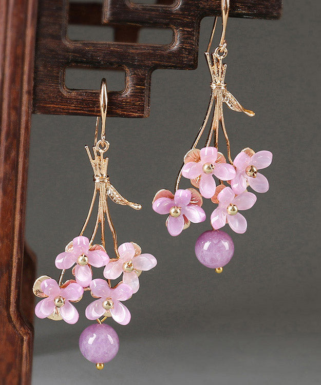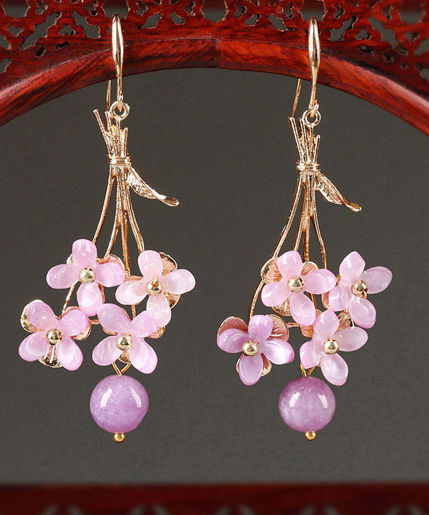 Wunderschöne hellviolette, kupferfarbene, überzogene Blumen-Tropfenohrringe