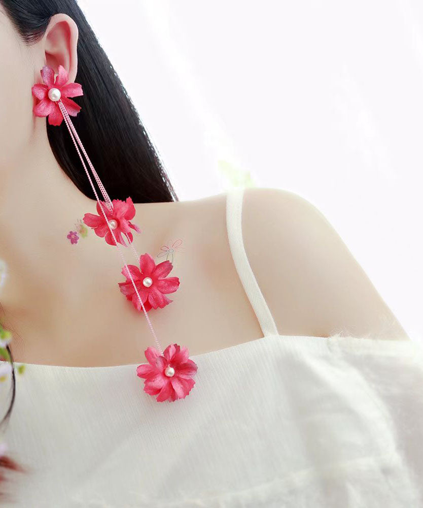 Wunderschöne hellgelbe Perlen-Tropfenohrringe mit Blumenquaste