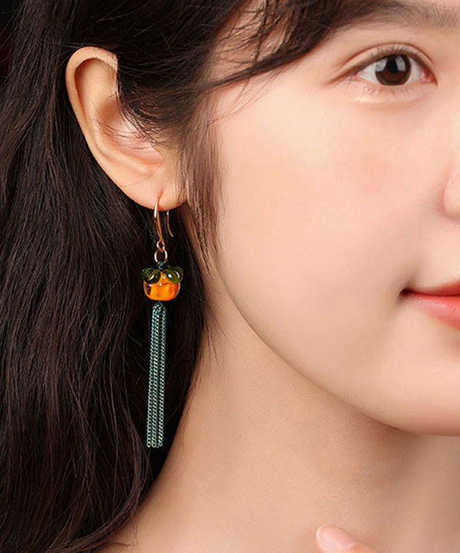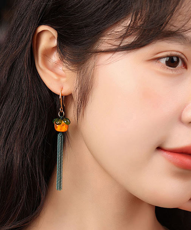 Wunderschöne orangefarbene Ohrringe mit Quasten und überzogener farbiger Glasur