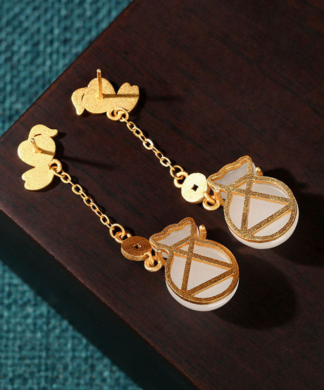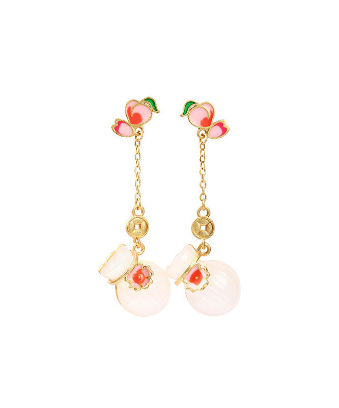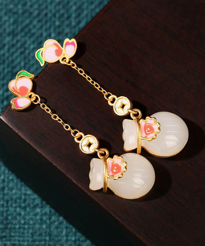 Wunderschöne rosa Sterling Silber Overgilt Jade Emaille Geldbeutel Tropfen Ohrringe