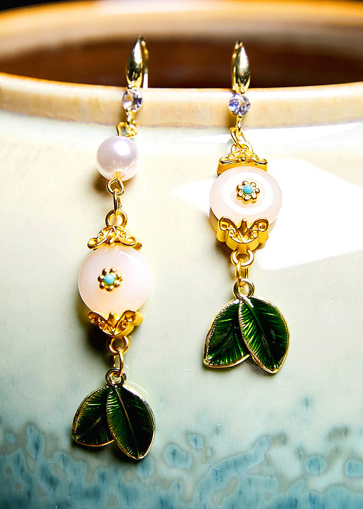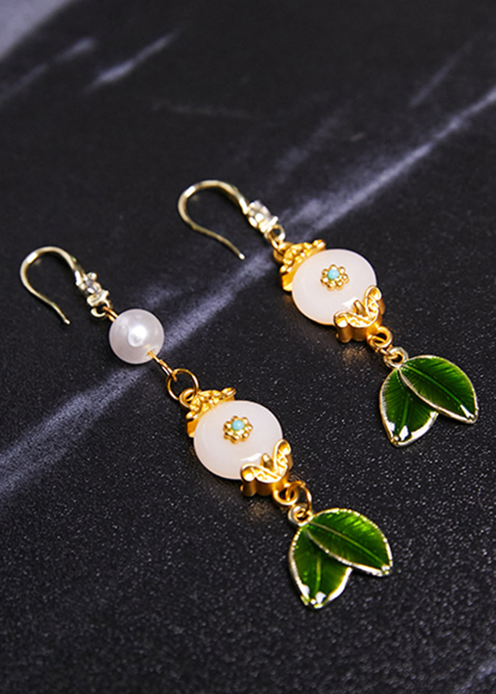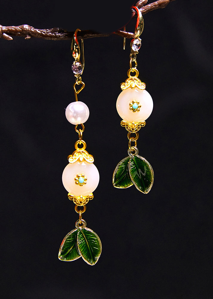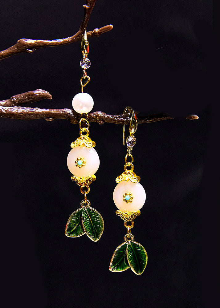 Wunderschöne weiße Jadeblatt-Metall-Tropfenohrringe 2024, neuer Stil