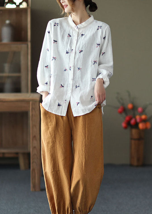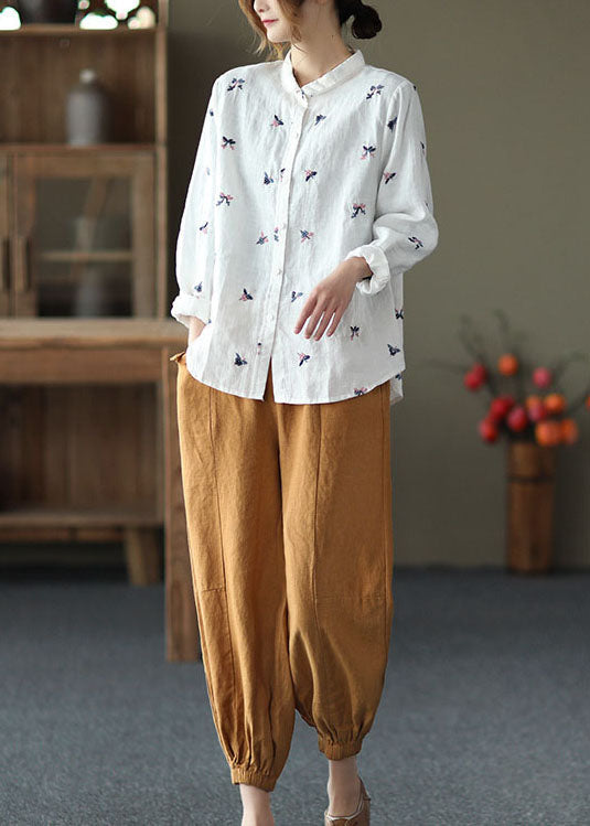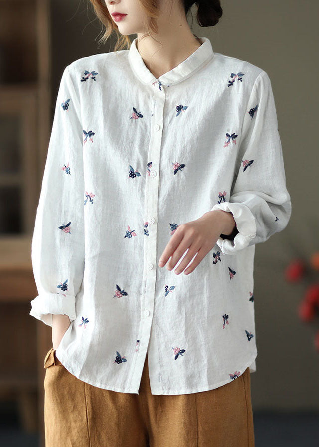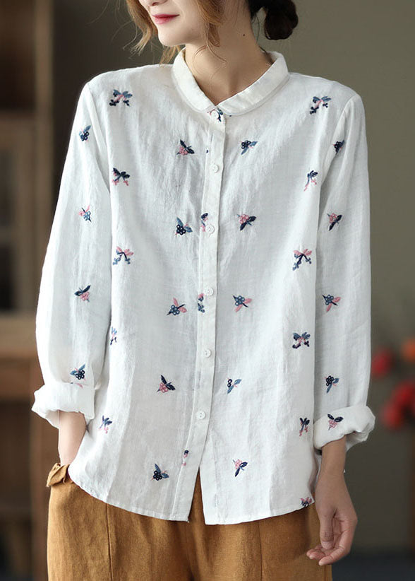 Wunderschönes weißes Peter Pan Kragen besticktes Patchwork Leinen Top Frühling
