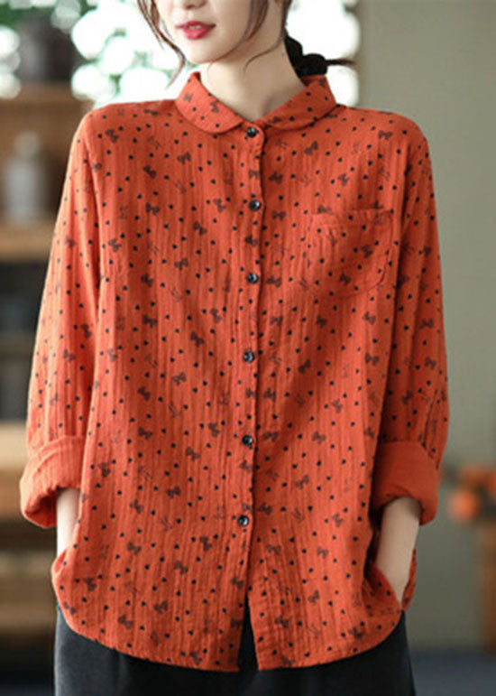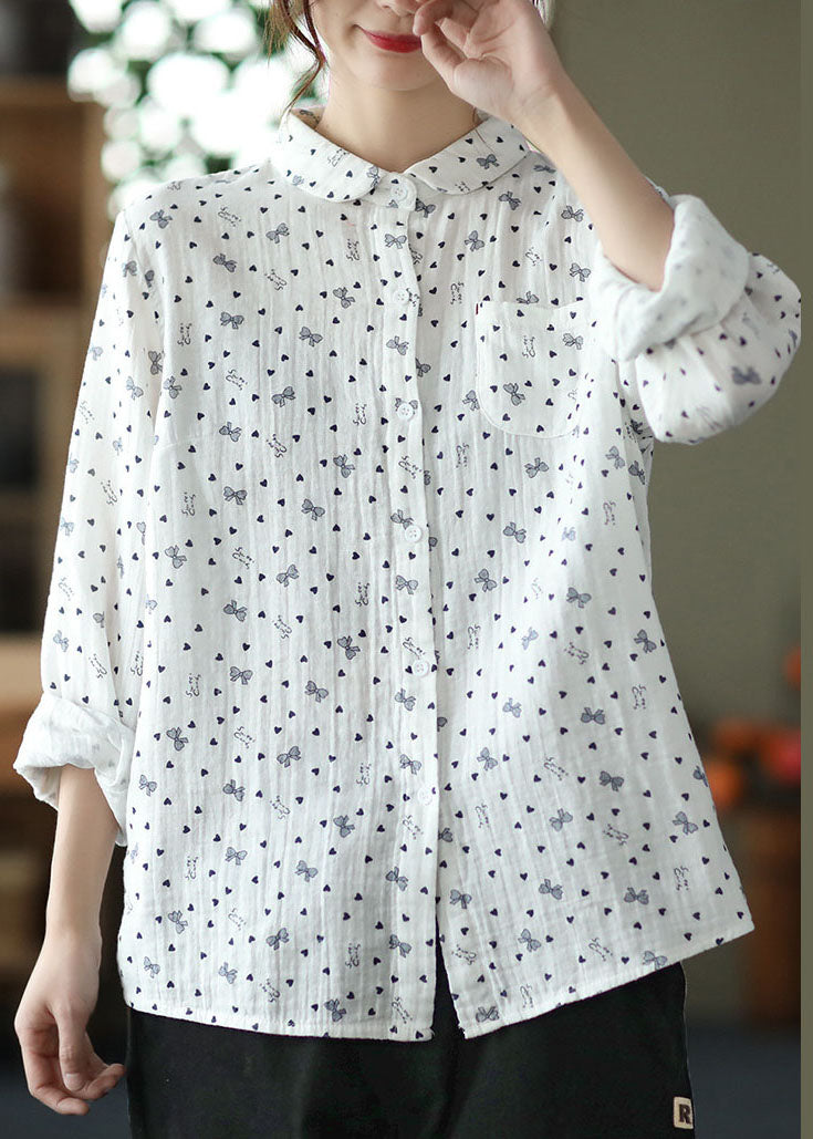 Schöne weiße Peter Pan Kragen Print Patchwork Baumwolle Shirts Top Frühling
