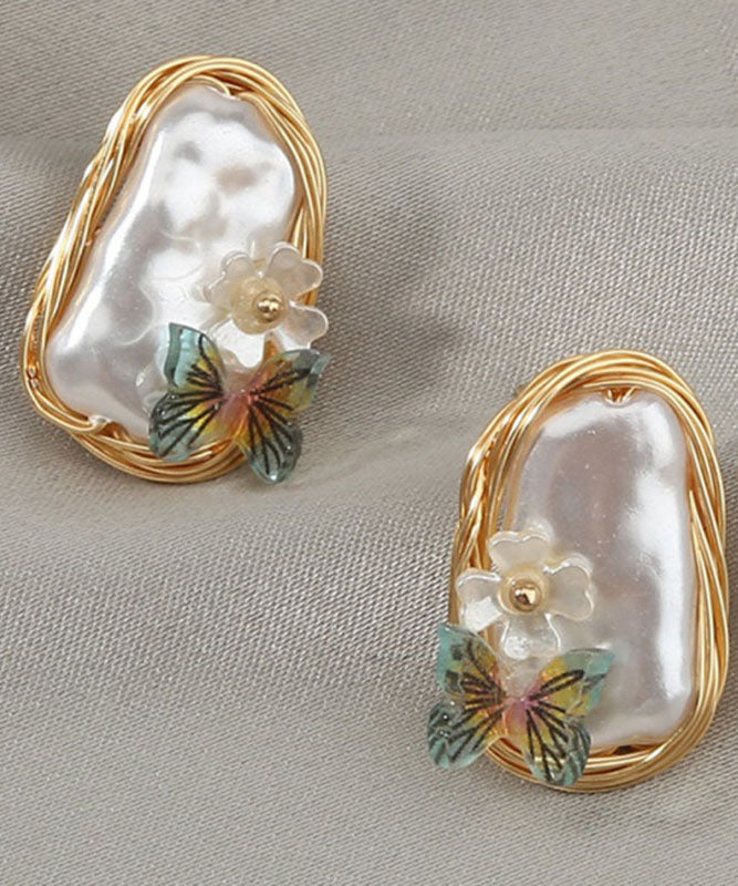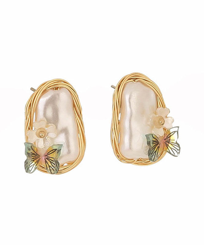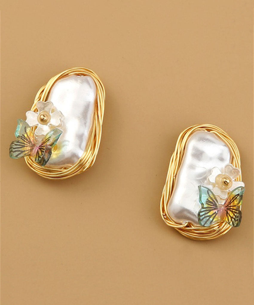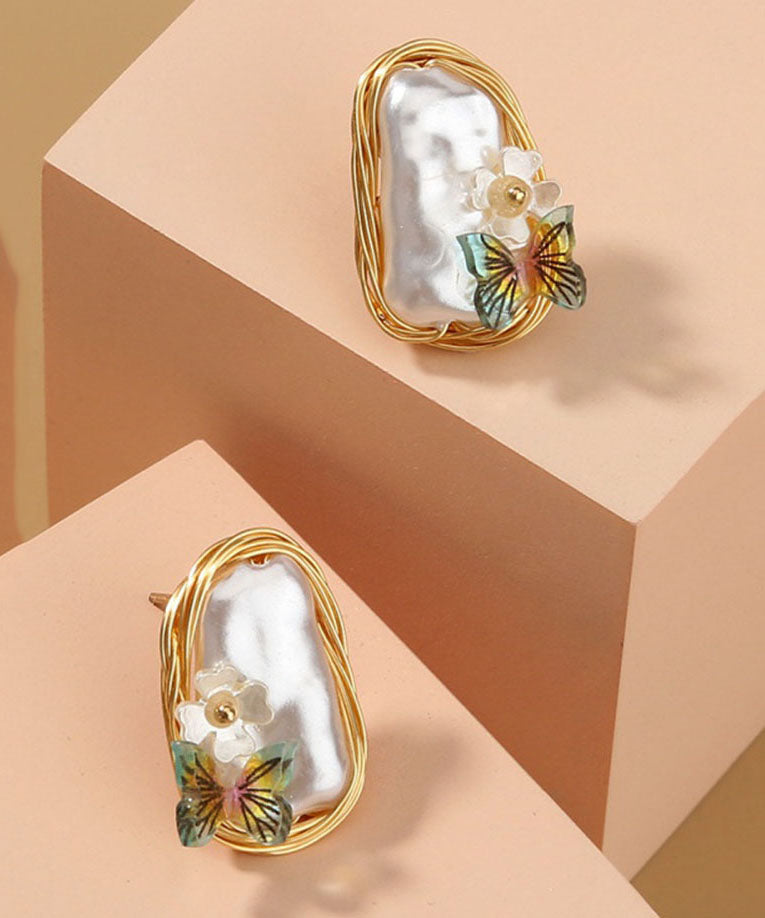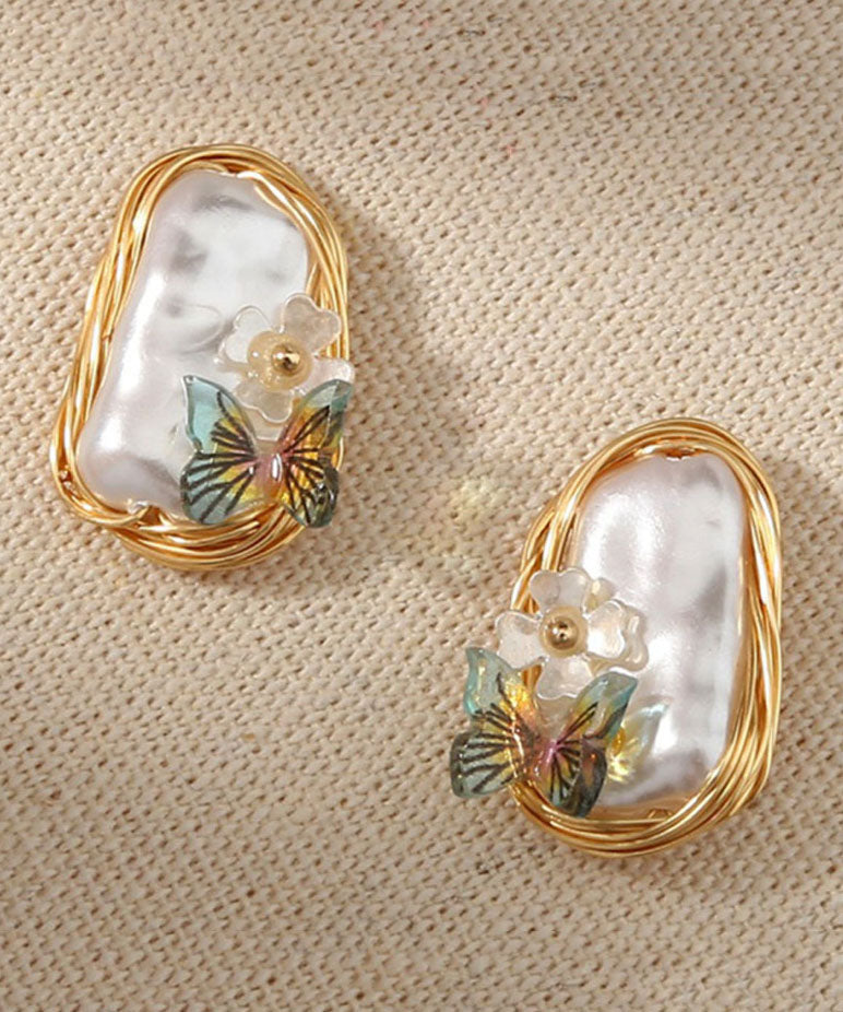 Wunderschöne handgefertigte gelbe Ohrstecker mit Perlen und Schmetterlingsmotiv