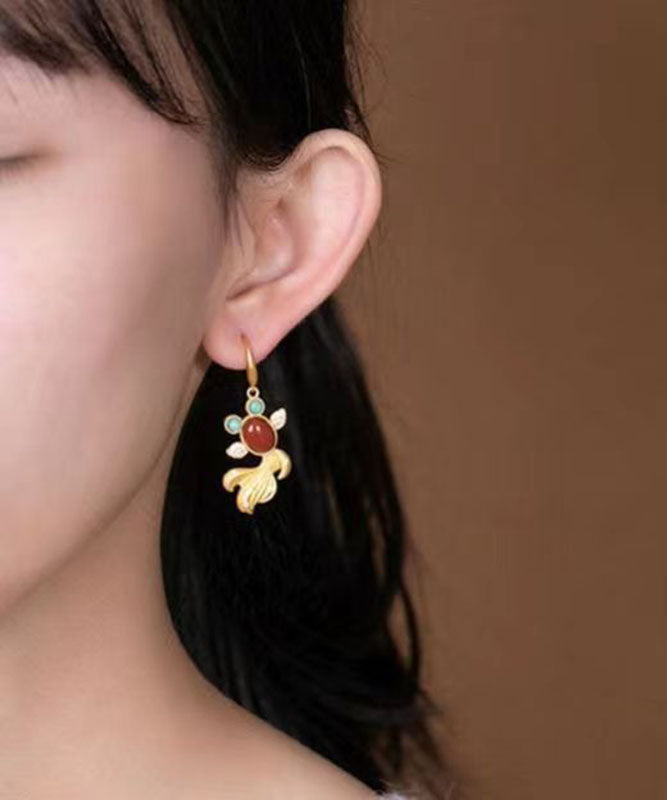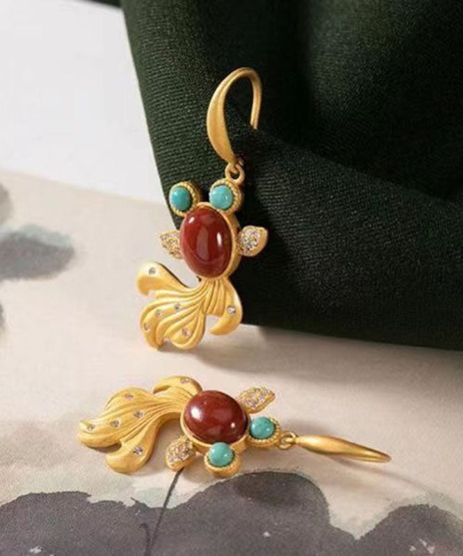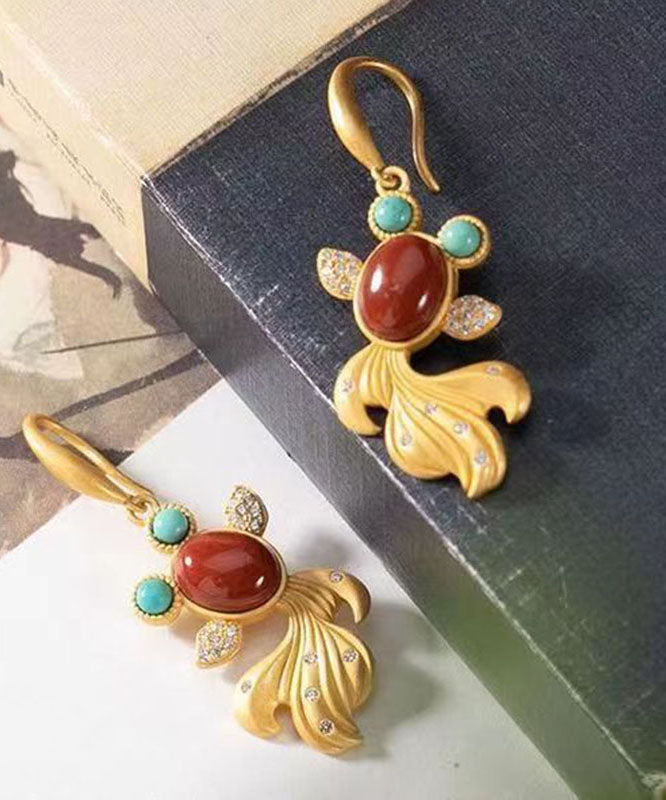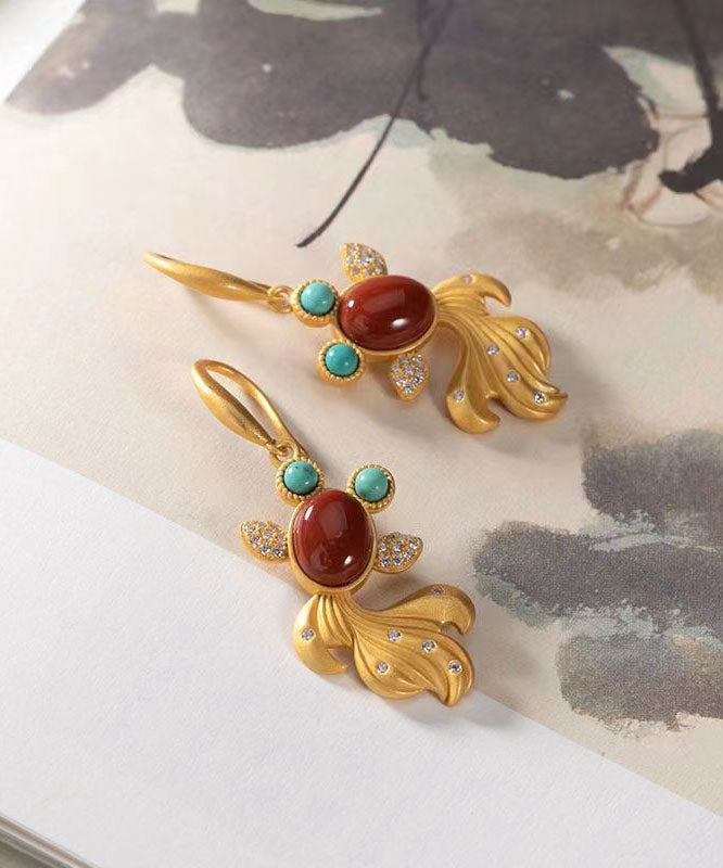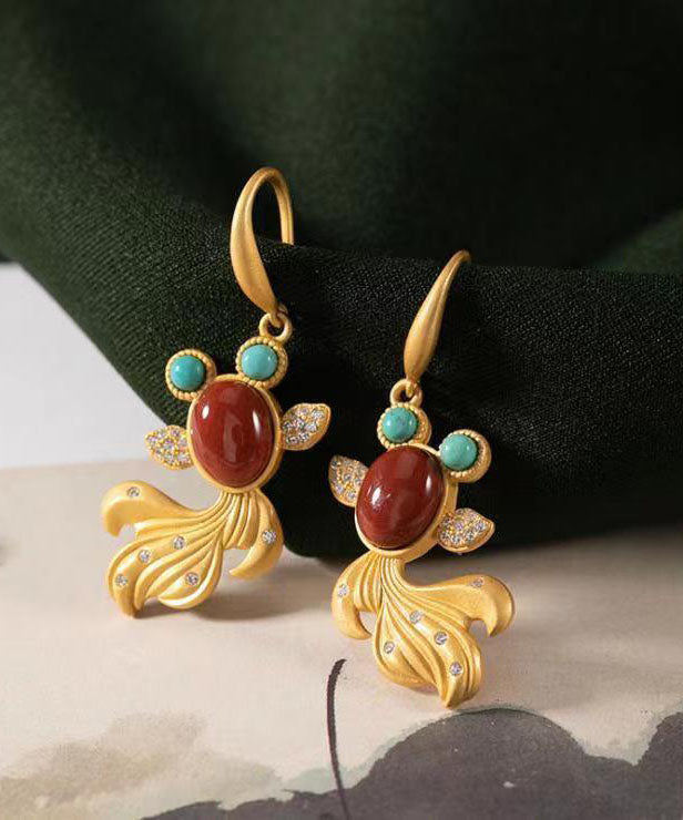Wunderschöne gelbe Sterling Silber Overgild Achat Zirkon Türkis Goldfisch Tropfen Ohrringe