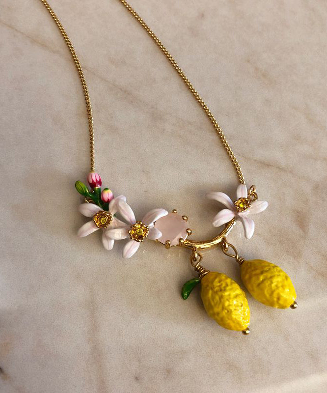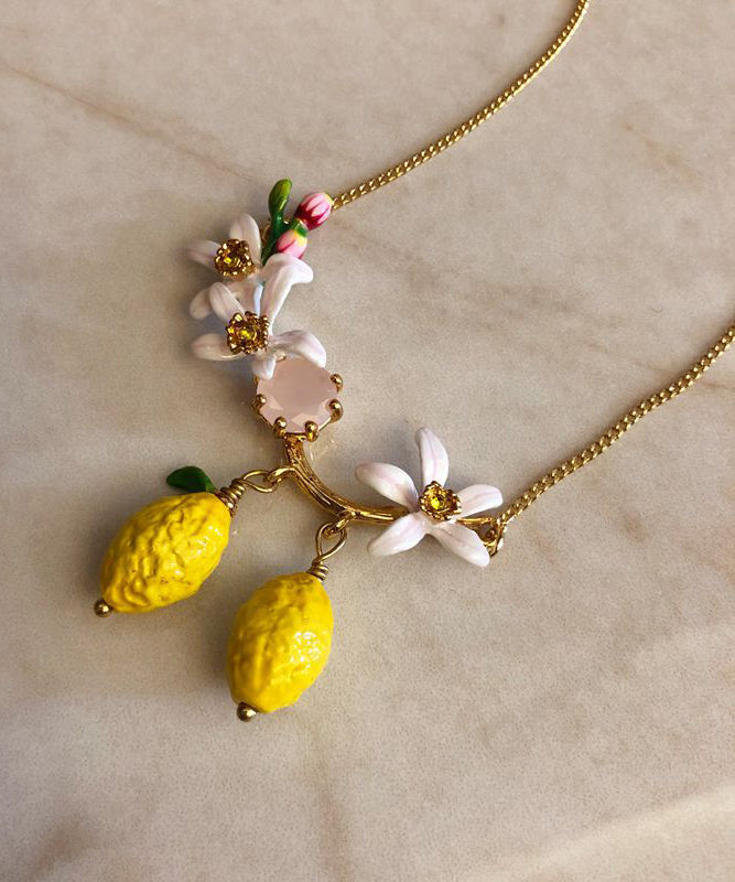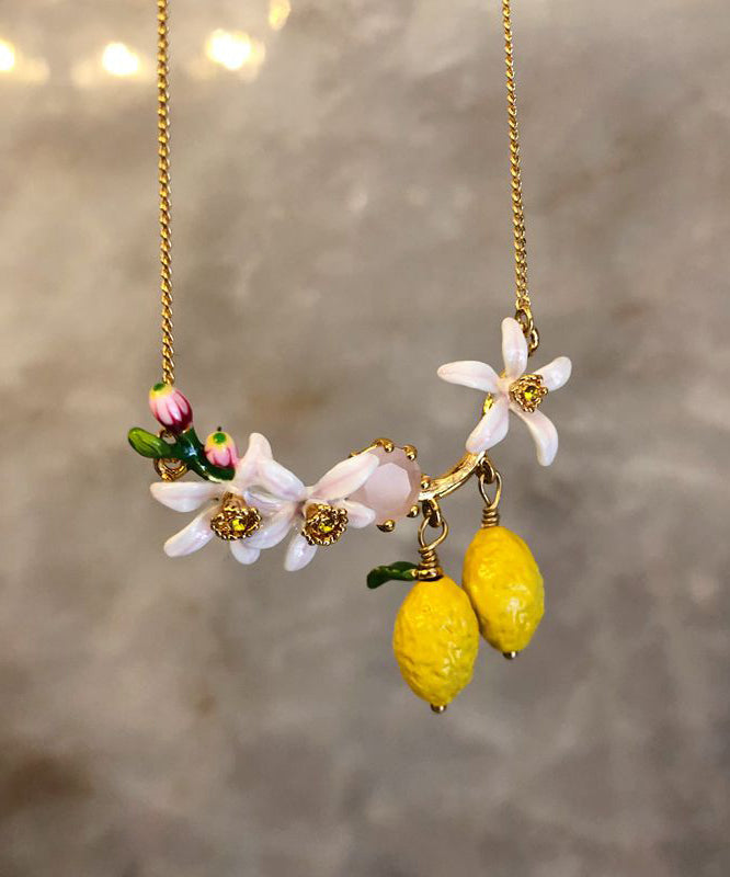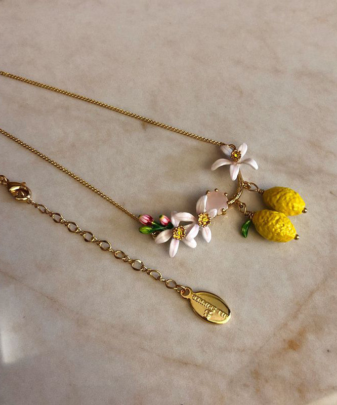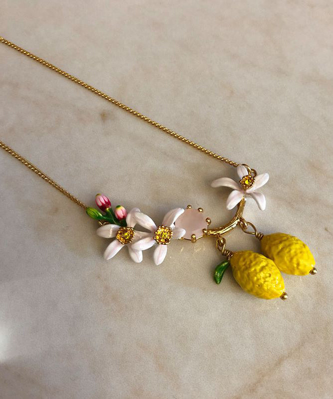 Wunderschöne Halskette mit Anhänger aus gelbem Sterlingsilber mit vergoldetem Emaille-Edelstein