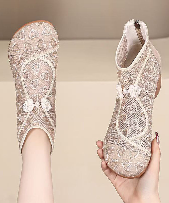 Schwarze, klobige, atmungsaktive Mesh-Stiefel mit Stickereien im Retro-Stil