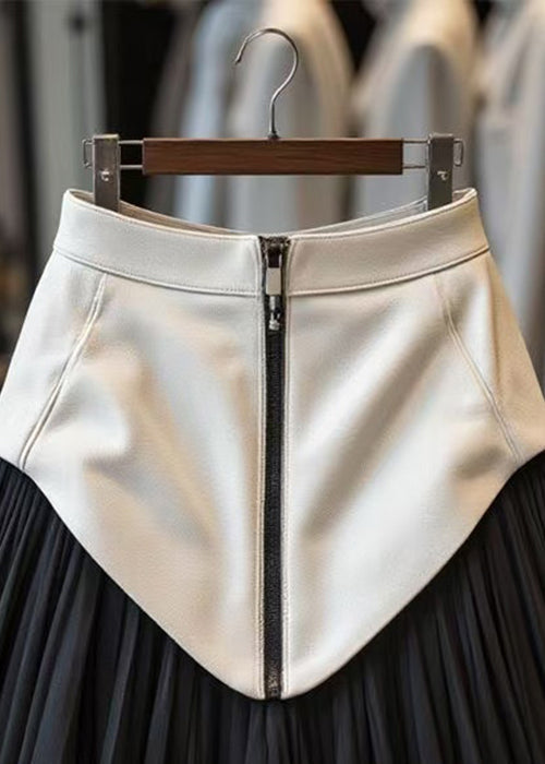 Black Zippered Tulle Patchwork Faux Leather Skirts Wrinkled