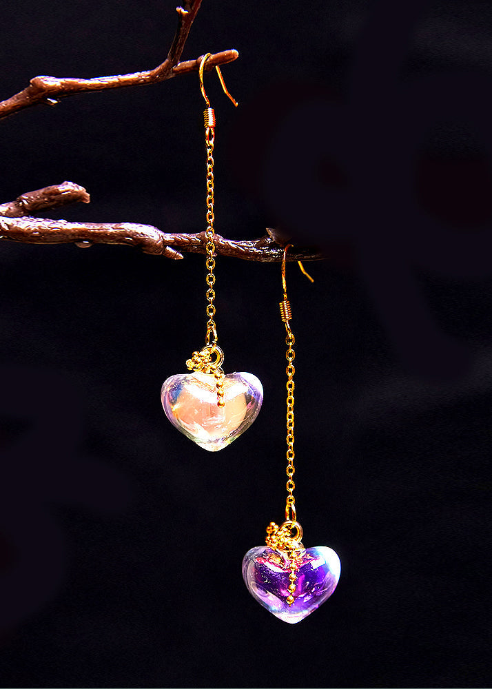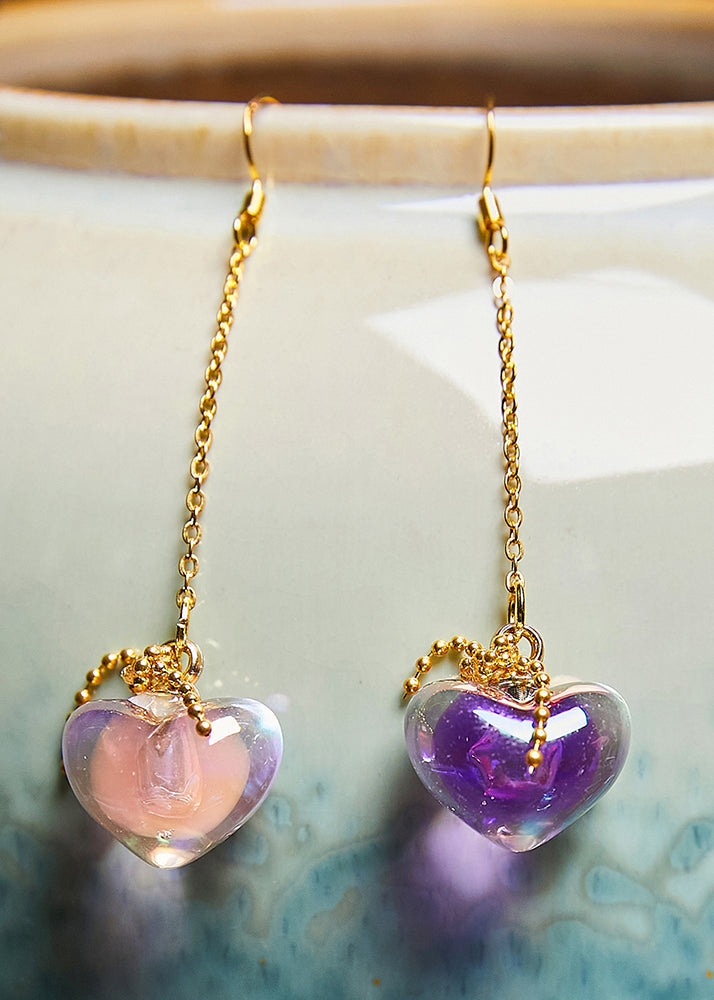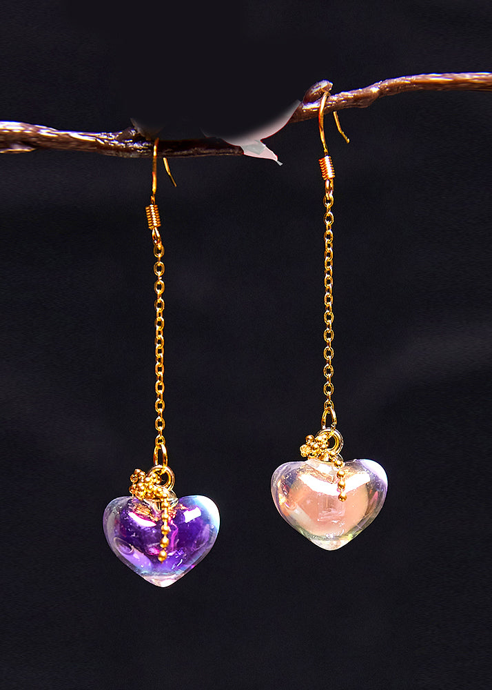 Boho Asymmetrisches Design Herzförmige Kristall Tropfen Ohrringe