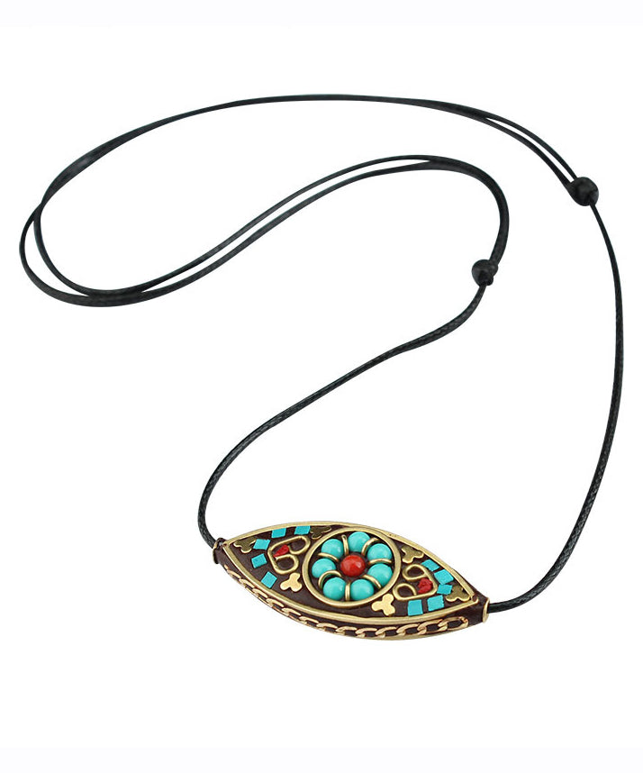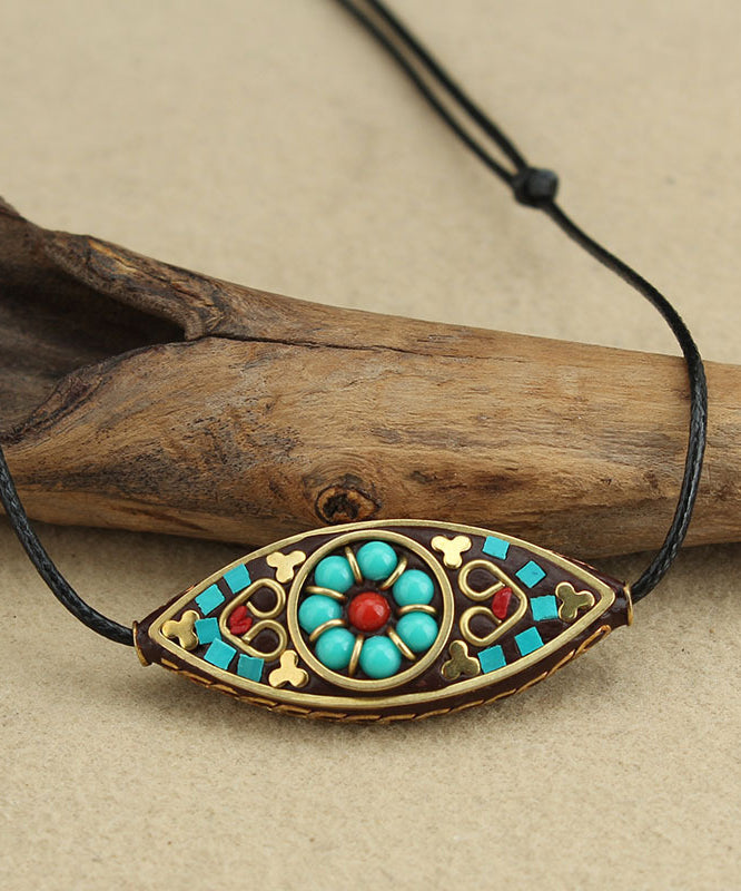 Boho Grüne Handstrickende Kupfer Türkis Anhänger Halskette