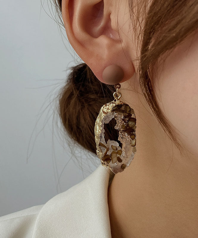 Boho Grüne Sterling Silber Legierung Smaragd Asymmetrische Tropfen Ohrringe