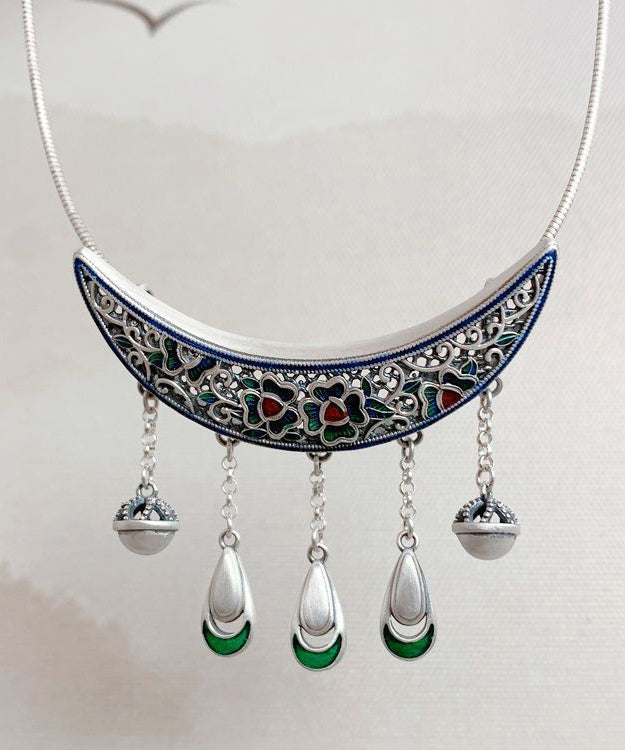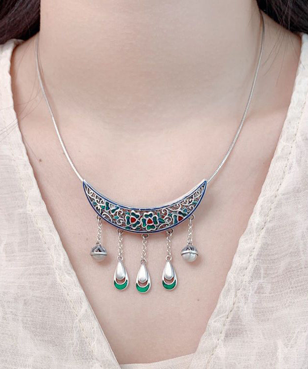 Boho Quaste Bend Anhänger Halskette Retro Burnt Blue