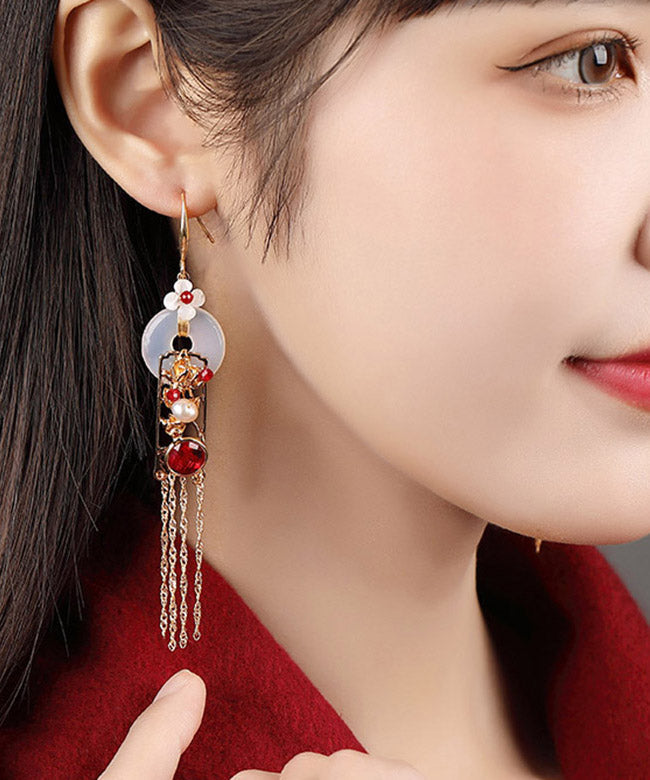 Boho Weiß Kupfer Jade Achat Perle Quaste Tropfen Ohrringe