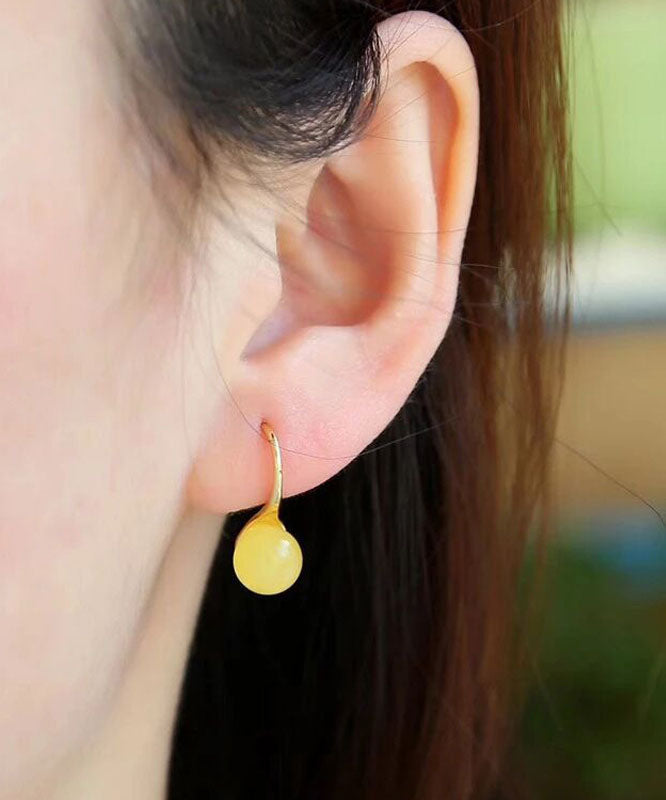 Boho Gelb Sterling Silber Chalcedon Sphärische Tropfen Ohrringe