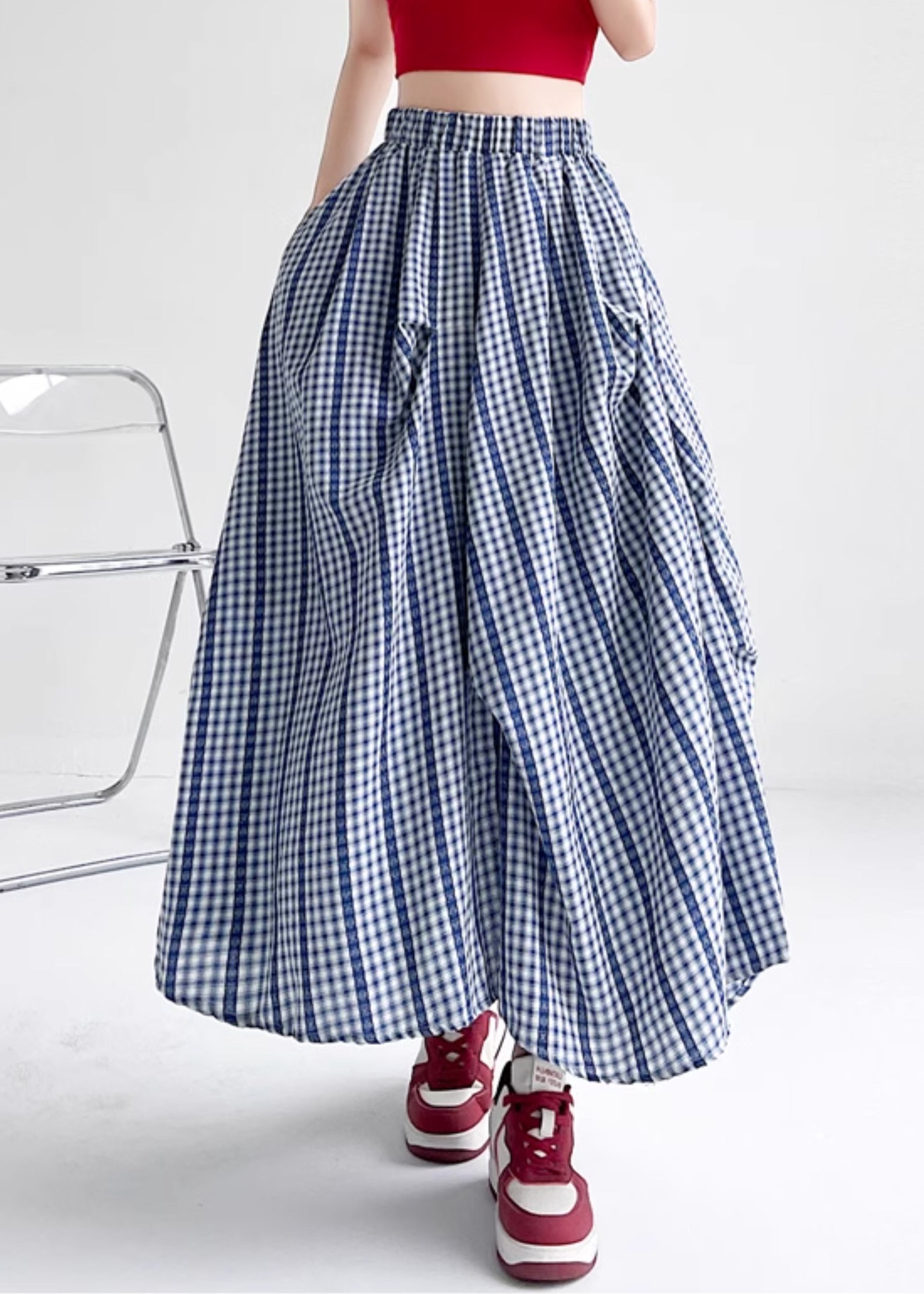 Boutique Blau Karomuster Taschen Patchwork A-Linien-Röcke Sommer