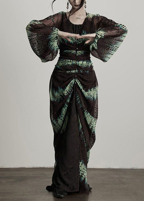Boutique Grüne Seidenstrickjacken mit V-Ausschnitt und Nagelperlen für den Frühling