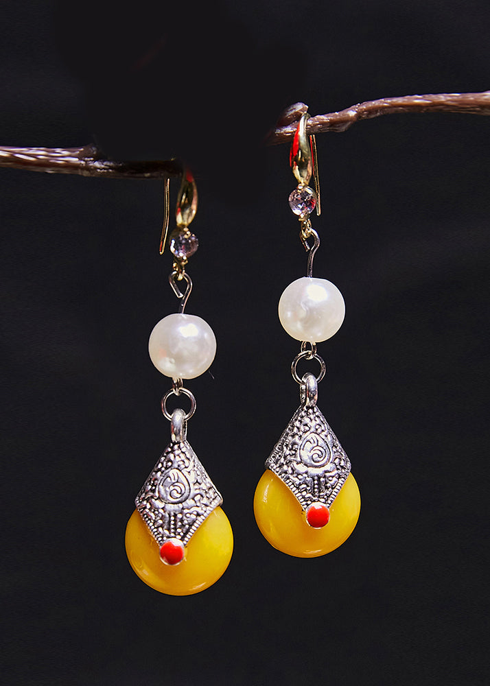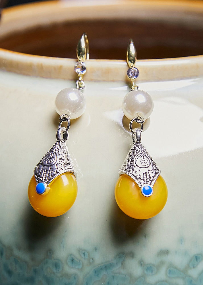 Boutique Perlenkette Feine Bienenwachs-Tropfenohrringe