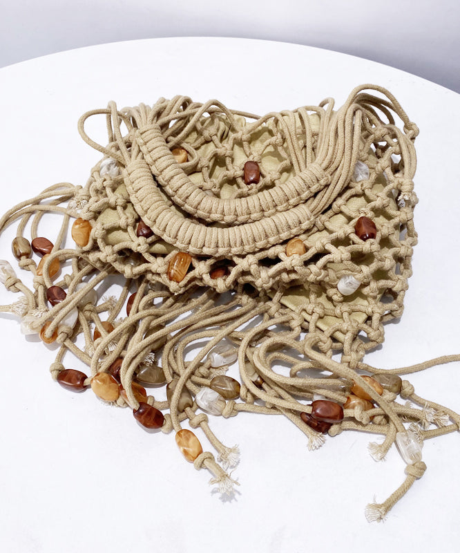 Lässige beige Quasten-Nagelperlen-Webtasche