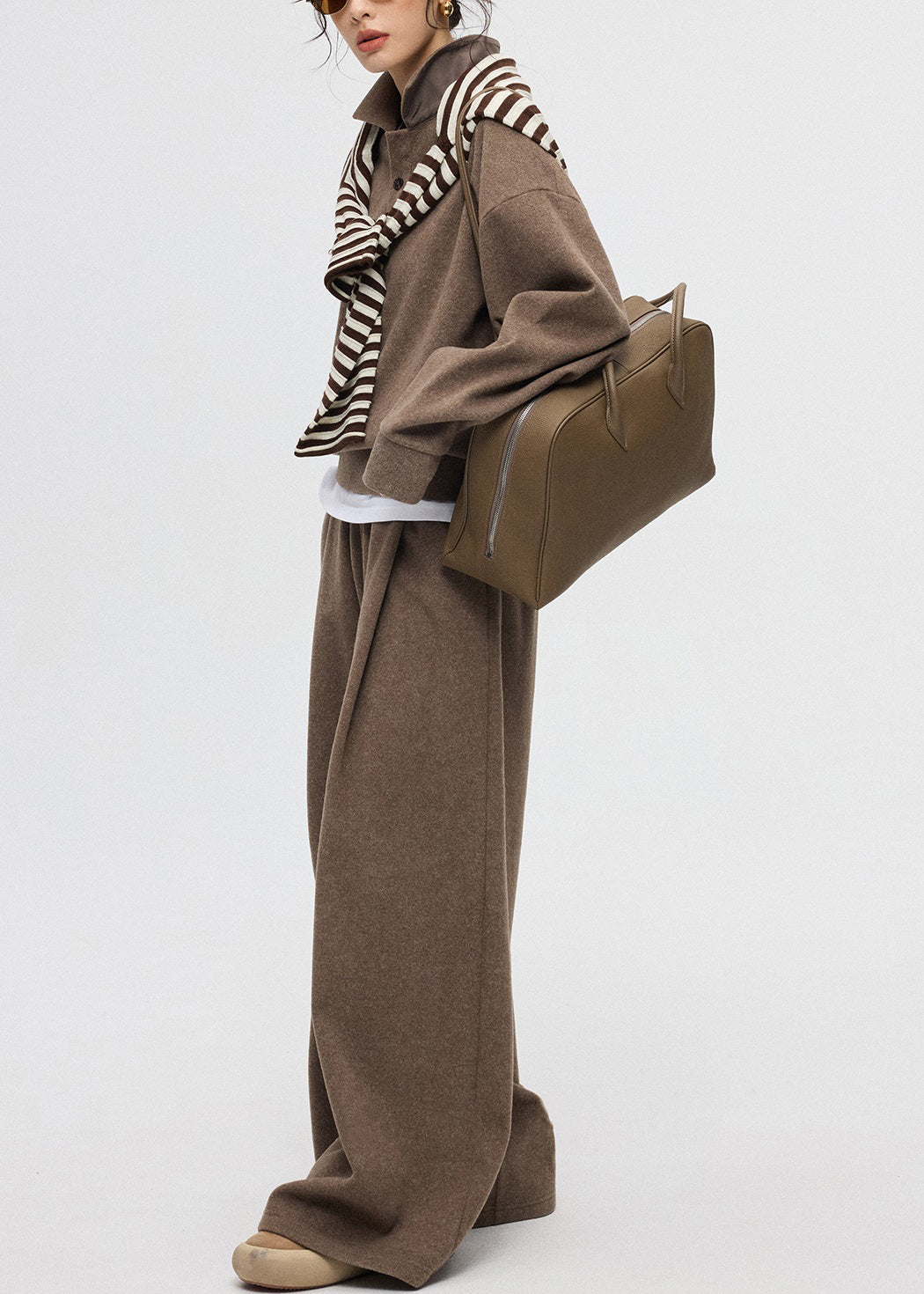Lässiges zweiteiliges Kaschmir-Set mit Peter-Pan-Kragen und Knöpfen in Kaffeebraun für den Winter