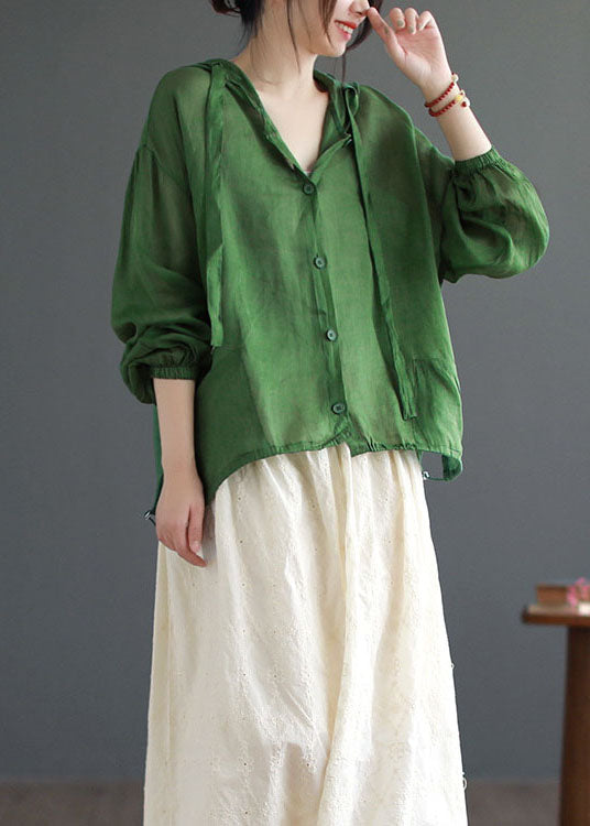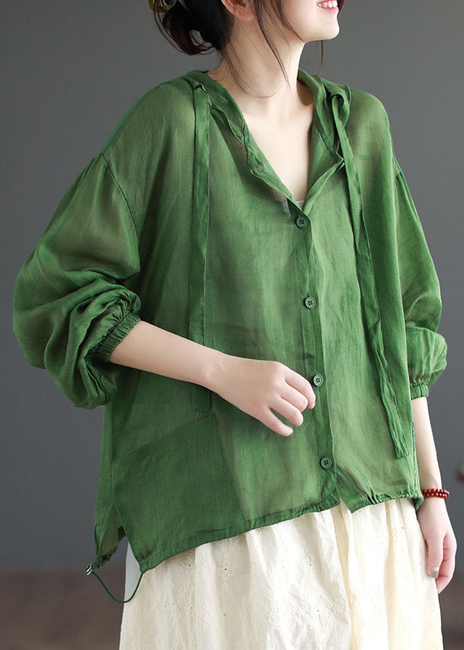 Lässiger grüner Kapuzentaschen Patchwork Leinen dünner Mantel Sommer