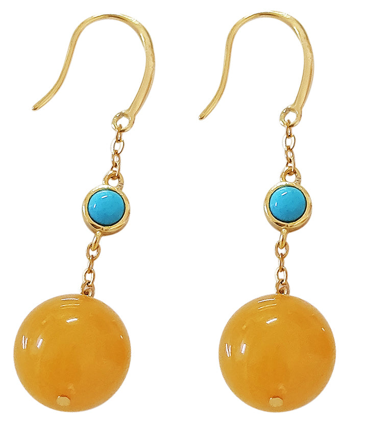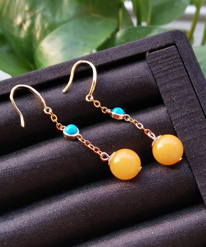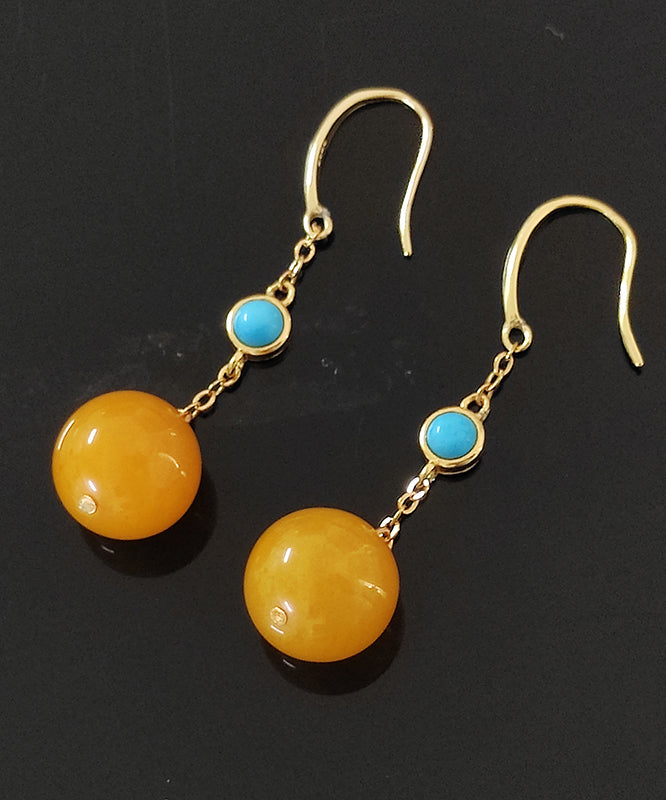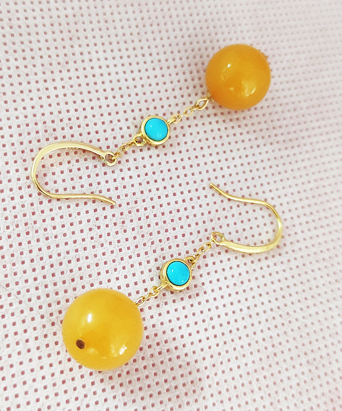 Lässige gelbe Sterling Silber Intarsien Bienenwachs Türkis Tropfen Ohrringe