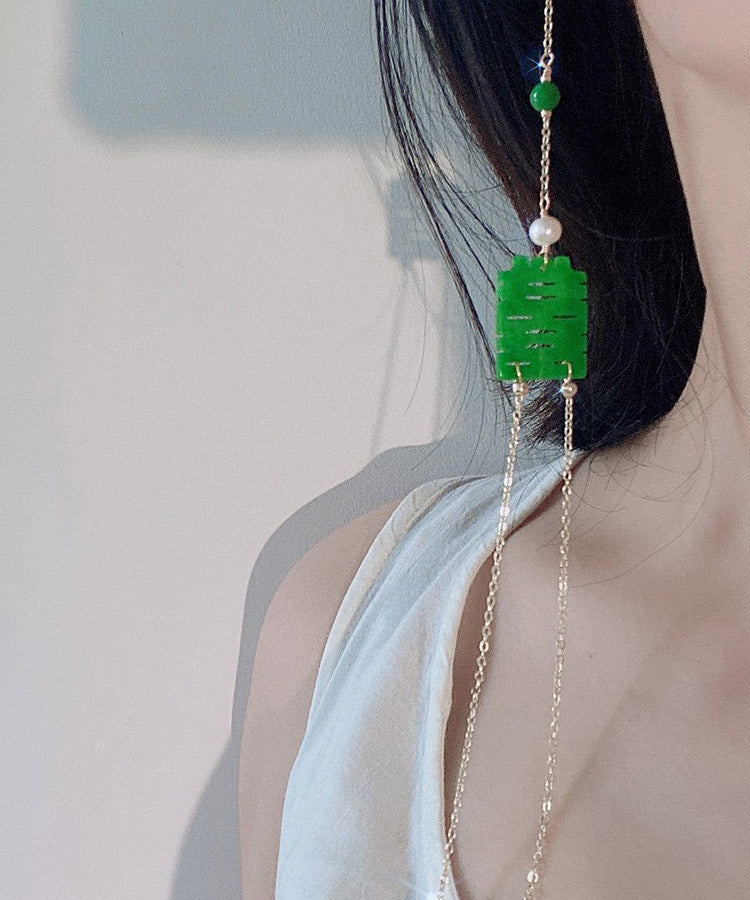 Schicke Ohrringe mit Jadeperlen und Quasten in trockener grüner Jade
