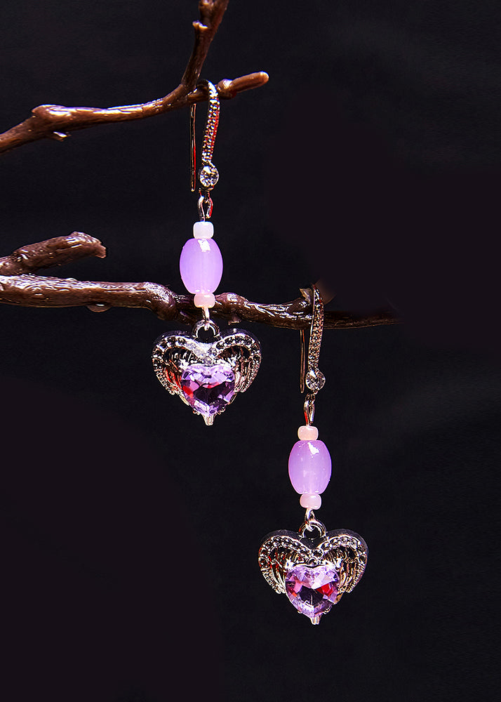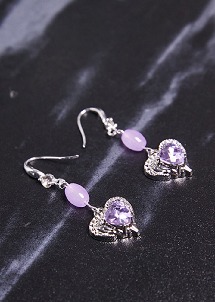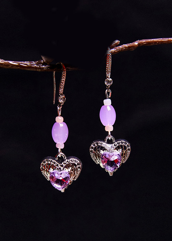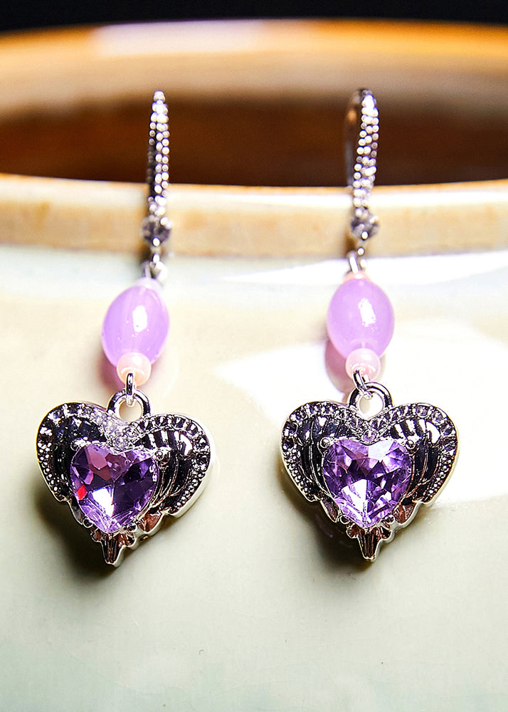 Schicke hellviolette herzförmige Edelstein-Tropfenohrringe