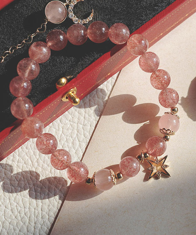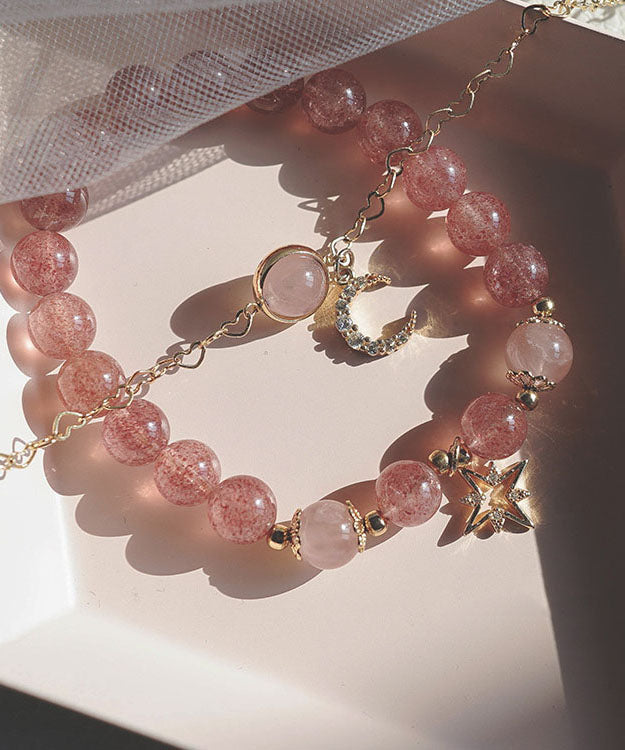 Schickes rosa 14 Karat Gold Erdbeere Kristall Zirkon Stern Mond Armband
