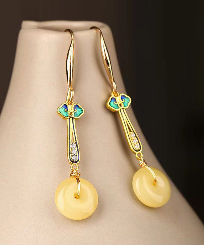 Schicke silberne Zirkonia-Ohrhänger aus gelber Jade