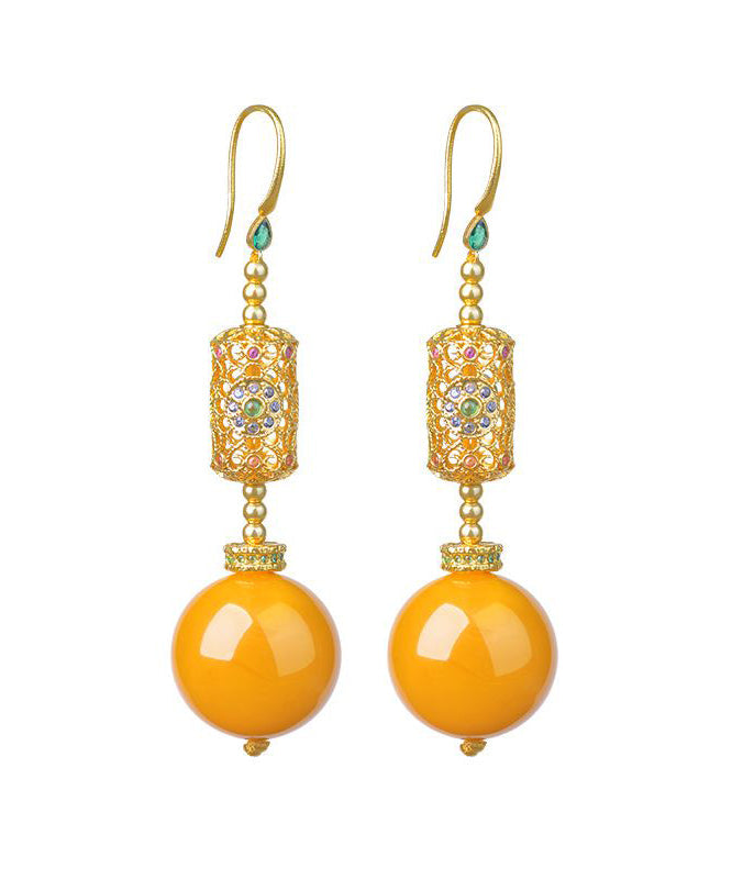 Ohrhänger im chinesischen Stil aus vergoldetem Sterlingsilber, Bernstein und Bienenwachs