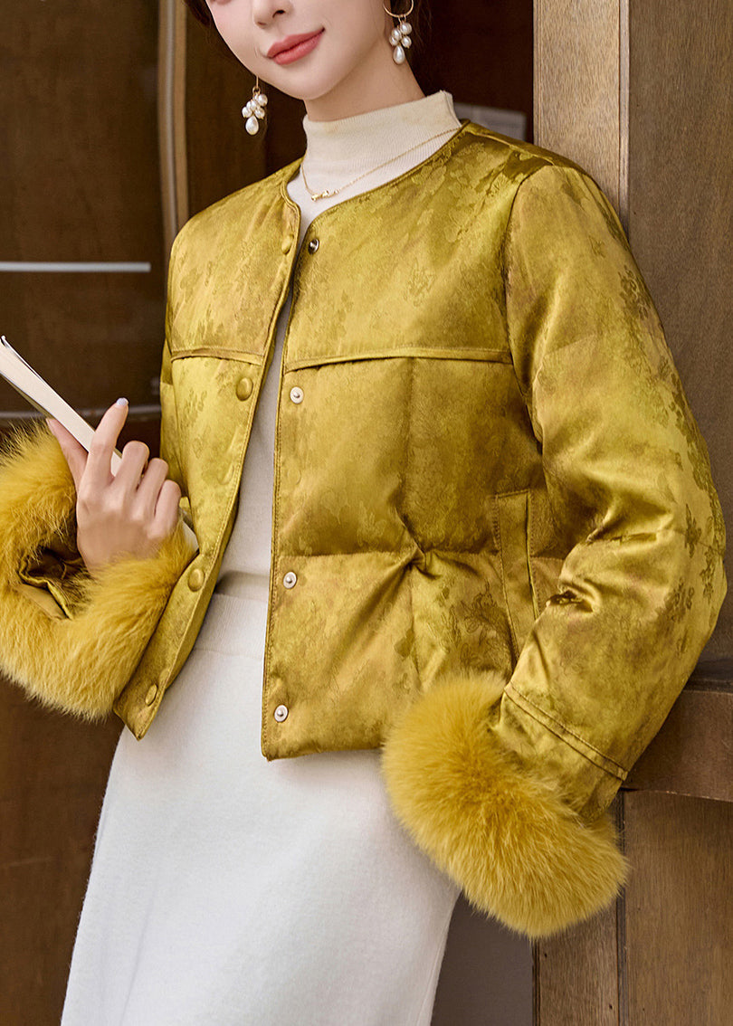 Wintermantel im chinesischen Stil, grün, Rundhalsausschnitt, mit Pelz-Patchwork und Entendaunen.