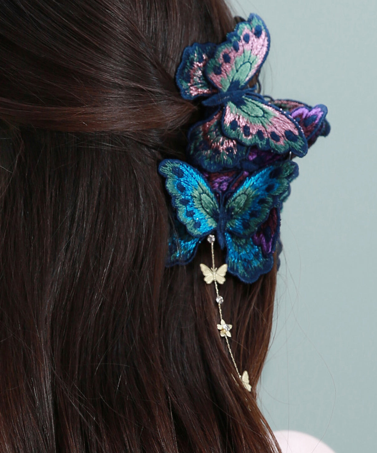 Haarnadel im chinesischen Stil mit Regenbogen-Schmetterlingsquaste aus Legierungsstoff