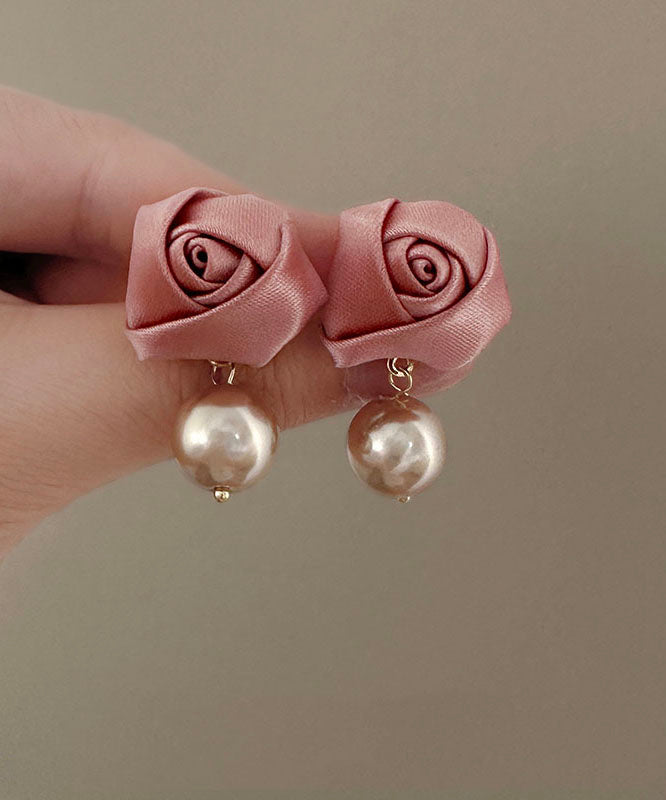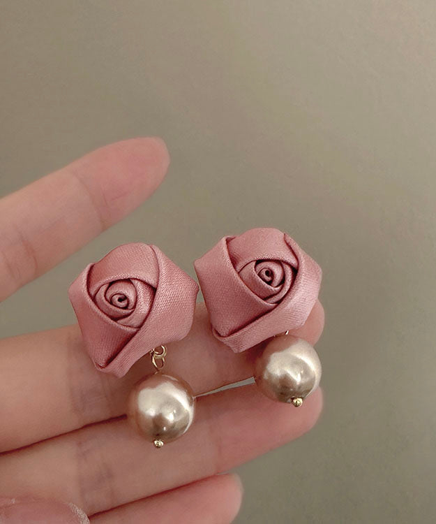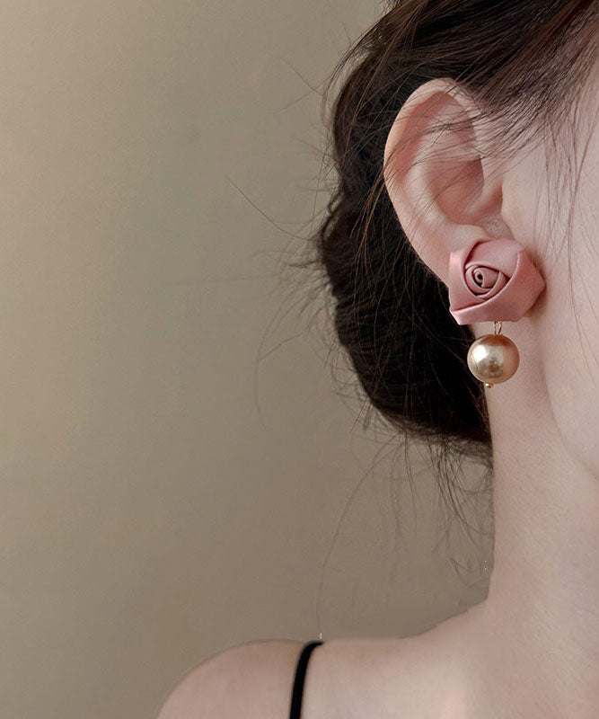 Edle rosafarbene Ohrringe mit Kupferüberzug und Rosenperlen