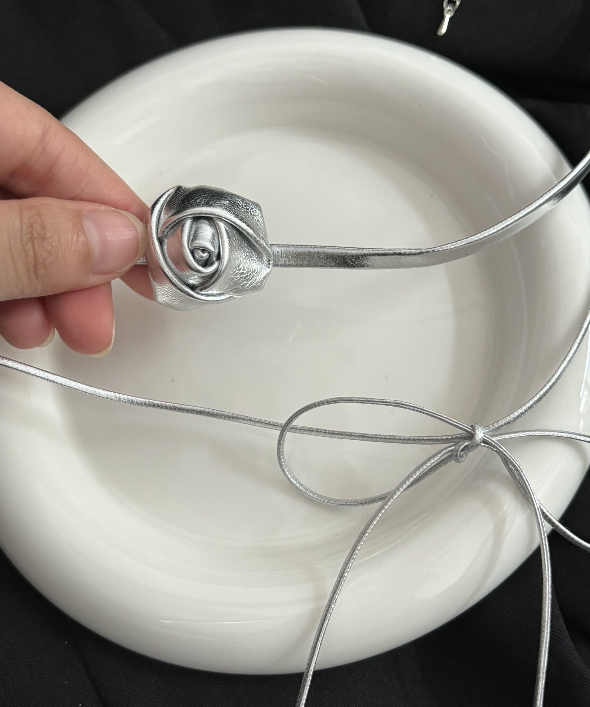 Edle Halskette mit zweilagiger Schleife aus Seidenleder und Rosen