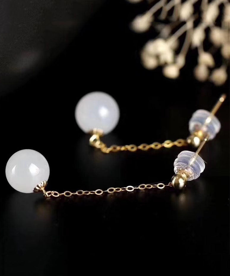 Edle Tropfenohrringe aus weißem Sterlingsilber mit vergoldeter Jade