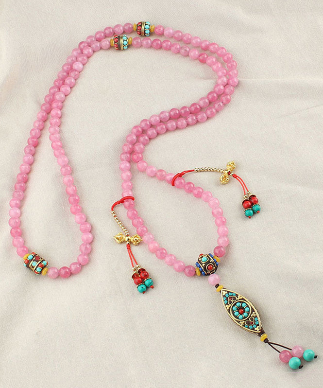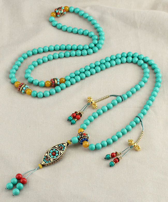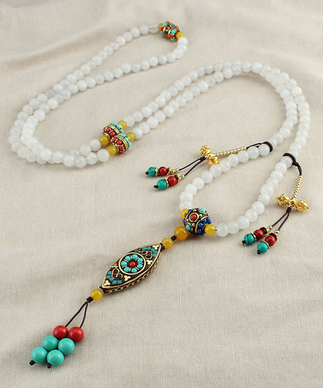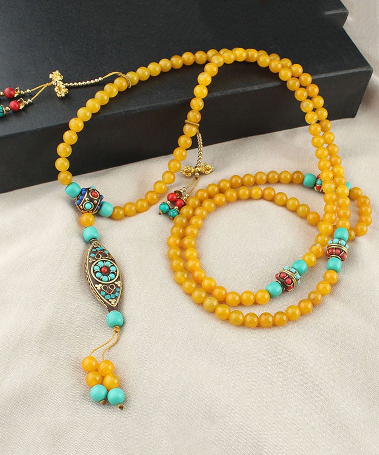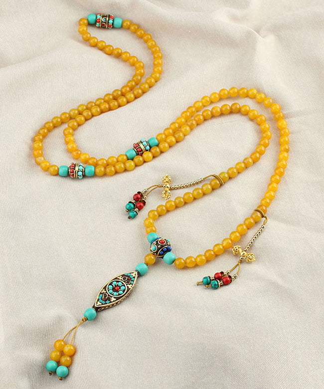 Edle Halskette mit Anhänger aus gelber Kupferlegierung mit Achatperlen und Quaste