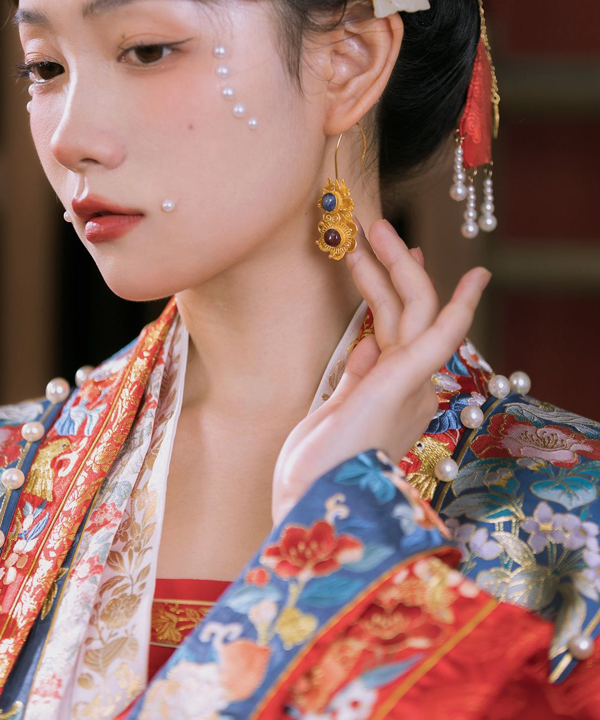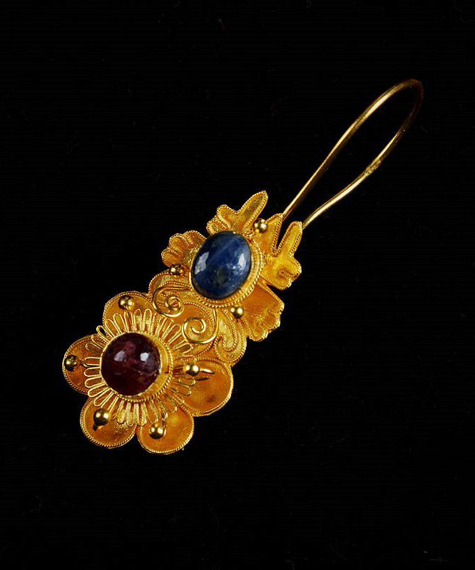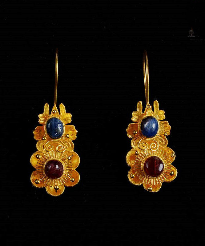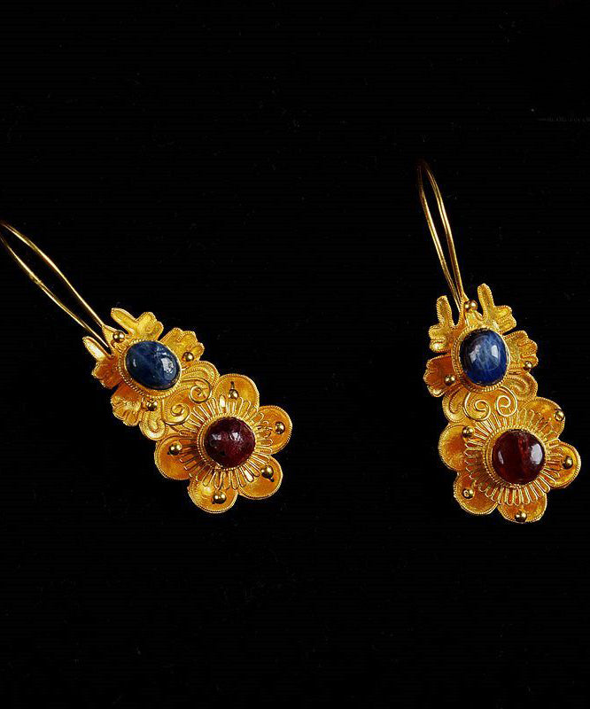 Edle gelbe florale Tropfenohrringe mit eingelegten Edelsteinen