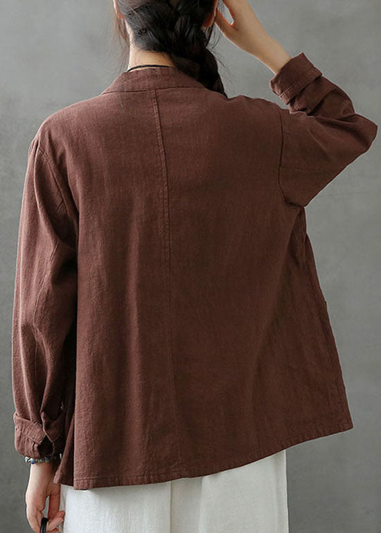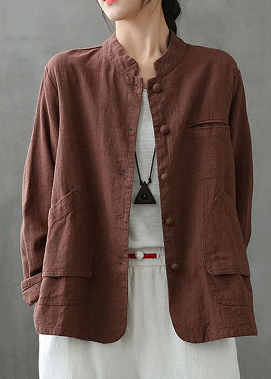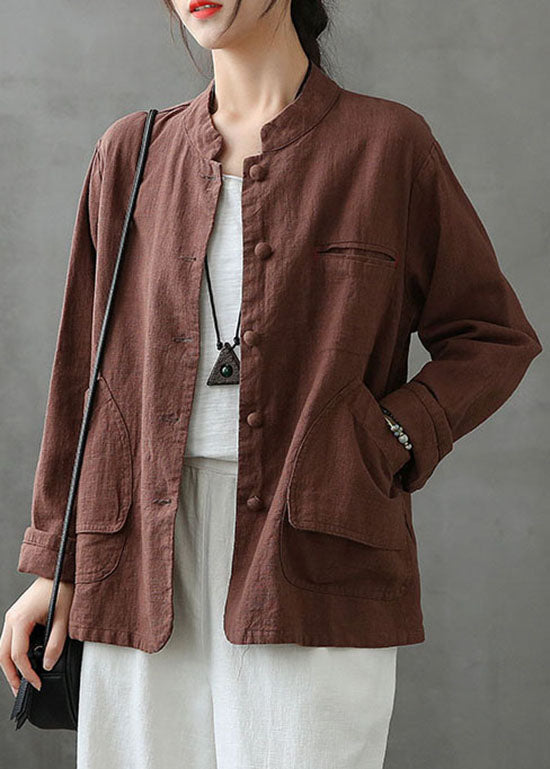 Kaffee Taschen Patchwork Leinen Mäntel Stehkragen Knopf Frühling