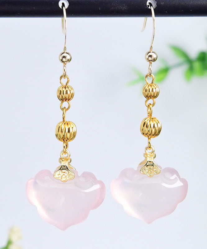 Süße rosa 14 Karat Gold Kristall Ruyi Tropfen Ohrringe