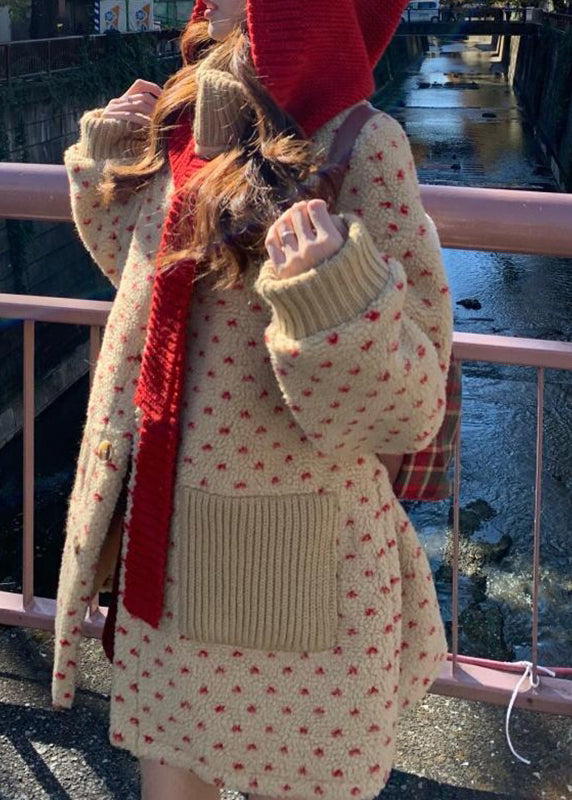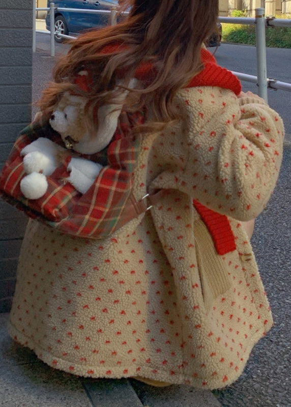 Niedlicher gelber Rollkragenmantel mit Taschen und Reißverschluss aus Kunstpelz, Laternenärmel